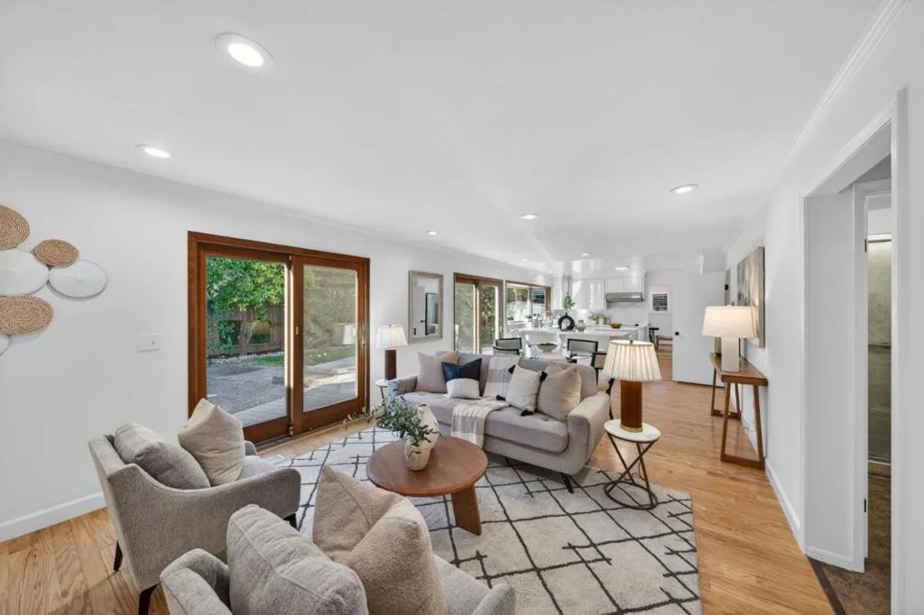 Welcome to this vibrant, light-filled residence in the prestigious Dry Creek neighborhood. This charming five-bedroom home sits on a generous 6,000 sq. ft. lot, blending timeless character with thoughtful modern updates. The updated kitchen features quartz countertops, custom white cabinetry, newer stainless steel appliances, and bar top seating, flowing seamlessly into the family room. Multiple sliding glass doors create effortless indoor-outdoor living, opening to a lush backyard with a built-out patio, perfect for entertaining and outdoor dining. Inside, enjoy beautifully refinished hardwood floors, fresh interior paint, updated hardware, and recessed lighting. Spacious, light-filled bedrooms offer flexibility for guests, offices, or growing needs, while the primary suite provides a comfortable retreat with ample closet space. Recent upgrades enhance comfort and efficiency, including a newer roof and insulation (2021), newer AC, whole-house water softener and purifier, EV charger, and a Bluetooth-enabled garage door opener. Ideally located near Bagby Elementary, the Cabana Pool, and just minutes to major commute routes and Downtown Willow Glen.