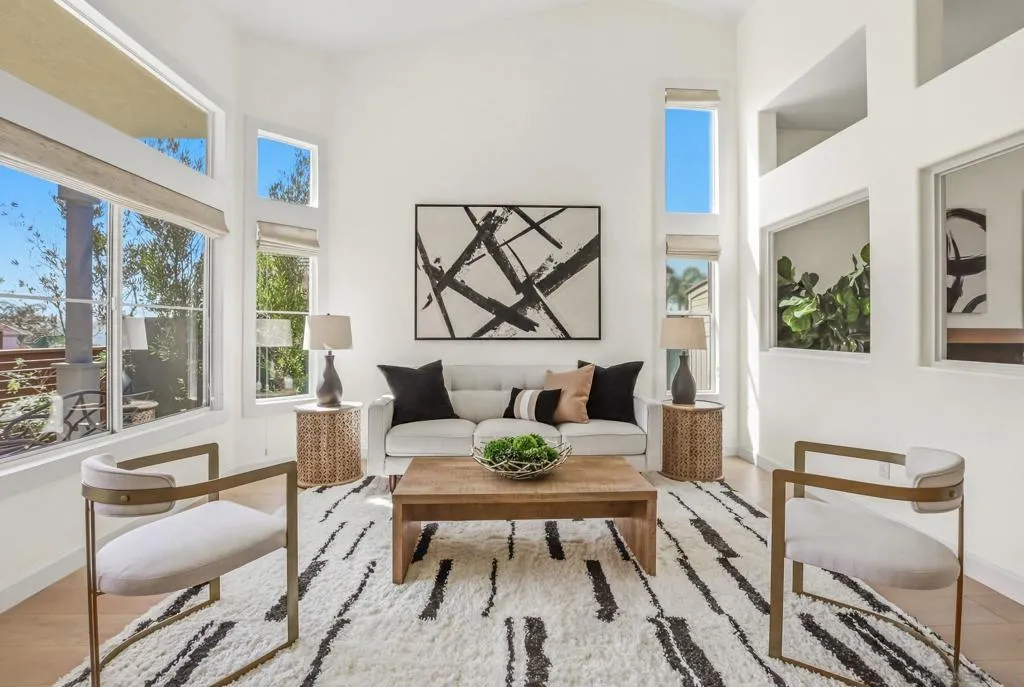 Welcome to 12306 — where soaring ceilings, warm wood inspired floors, and designer finishes create a home that simply feels different the moment you walk in. The fully reimagined kitchen stuns with custom cabinetry, quartz counters, and artisan tile. Gather in the sun-drenched dining room, unwind in the spacious family room, or retreat to the expansive primary suite with its spa-inspired bath and private balcony views. Outside, two pergolas frame a lushly landscaped yard built for Park Villag living at its finest. This is the one you've been waiting for. Home Upgrades: Exterior: Raised redwood garden bed for fruits and vegetables installed in 2022. Backyard completely remodeled for low-water use, designed by Black Mountain Landscape Design, with new concrete, pergola, drip system, lighting and high-value low-water plants including agaves, Pink Ice Proteas, olive trees, and California natives. Mango, orange, lemon, and lime trees. Fern Pines line the property. 2021 - New fence paint. 2021 - Front yard landscaped by homeowners (2017–2022) with California natives; registered as a monarch waystation and certified wildlife habitat. Combination drip and spray irrigation system. Cedar-planked horizontal privacy fence and gate built in 2018. Path lighting installed in 2017. Low water use throughout. Interior: Kitchen & buffet storage fully remodeled 2020, including enlarged casement windows, new window above sink, induction stove/oven, sink, microwave, and vent hood. Features include quartz countertops, new cabinets and drawers, West Elm sconces, CB2 knobs and handles, and customizable IKEA cabinetry. Custom walnut floating shelf and designer backsplash with Zellige tiles imported from Morocco and hand-painted FireClay tiles behind stove. Interior painted with Benjamin Moore in 2019 Pantry upgraded with Elfa shelving system. 2021 Engineered hardwood floors installed upstairs and downstairs 2020; new carpet installed 2026.Tile in bathrooms. New HVAC system 2015. Thoroughly serviced 2024. Nest Thermostat Laundry room updated with new cabinets and vinyl flooring. 2024 All toilets replaced 2025. Primary bath shower stall replaced 2026. Water heater replaced 2026. Flooring: Engineered Hardwood Floor in main downstairs rooms and upstairs hallway; vinyl in laundry room; carpet, tiled bathrooms