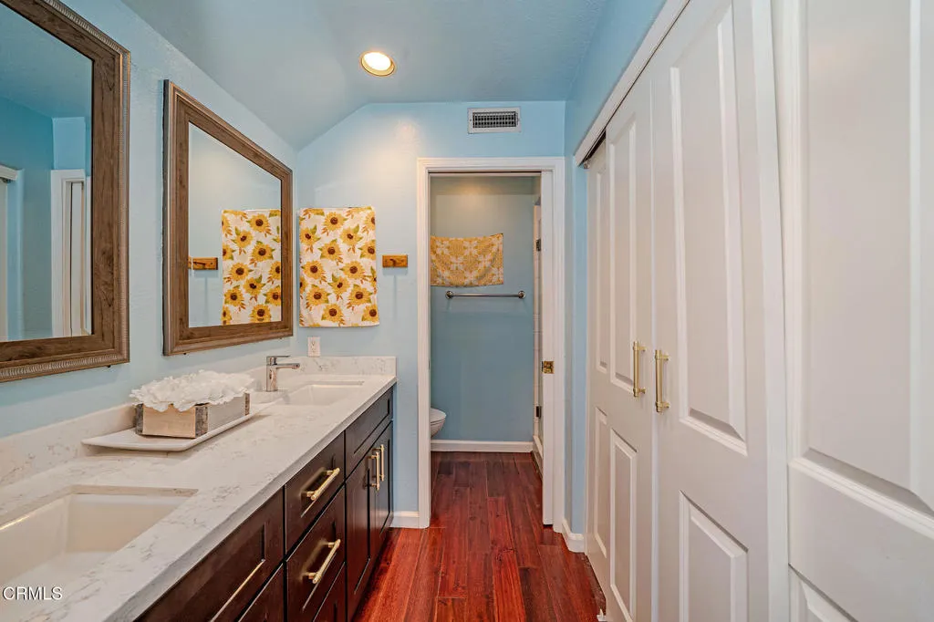 Location! Location! End-unit Turnkey house in the heart of Madison Heights! Why settle for a condo when you can have the privacy and prestige of a home ? 2bedrooms, 3 bathrooms. Open concept floor plan designed for seamless entertaining. The spacious living room is flooded with natural light, featuring soaring vaulted ceilings and cozy fireplace. Elegant French doors lead you to a delightful private patio - a serene retreat surrounded by mature trees. large dining area, completely remodeled kitchen with Caesar stone counter top and back splash, and wooden floors all through out the home. Upstairs, a vaulted ceiling adds to the already spacious master bedroom, walk-in closet, light-filled shower, double sink vanity, and an expansive treetop terrace offering sweeping views of the San Gabriel Mountains. when a moment of serenity is called-for. Bedroom two has an en-suite bathroom with new vanity, and a walk in closest. Additional noteworthy features include: plantation shutters, separate laundry room, extra storage room, new water heater , new roof, and a huge two car garage with a storage cabinet. Settled in a very nice community. Don't miss out on this opportunity!