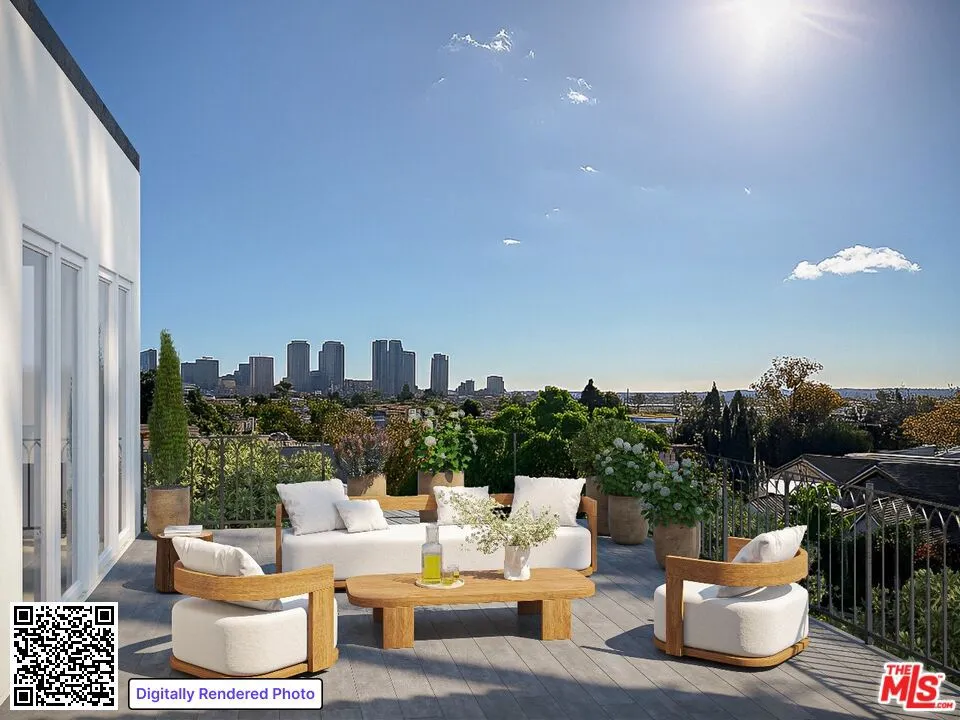 The largest residence in the building, Residence 201 at Ashton Villas, offers approximately 2,400 square feet of expansive, full-floor living with an elevator that opens directly into the unit and a dramatic great room designed for both comfort and entertaining. The space features a generous living area, an oversized dining area, and additional room for a secondary seating or lounge area - creating a true centerpiece for the home. Four fireplaces are thoughtfully placed throughout, including two in the great room, one on the private balcony, and one in the primary bedroom. As the final remaining residence offering an outdoor fireplace, it presents a truly rare opportunity. Thoughtfully designed with warm, contemporary interiors and a bright south-facing orientation, the home is filled with natural light and opens to an approximately 320-square-foot private balcony, seamlessly blending indoor and outdoor living. The chef's kitchen serves as a striking focal point, featuring a standalone flamed granite island, quartzite countertops, a walk-in pantry, custom built-ins, and premium Italian and German appliances by Bertazzoni and Liebherr. This 3-bedroom, 3.5-bath residence offers ensuite bathrooms in every bedroom, balancing comfort with elevated design. Ashton Villas is Westwood's only new construction condominium offering, an exclusive collection now limited to just three remaining residences. The building delivers a lifestyle defined by light, space, and refinement, complete with two tandem parking spaces, advanced home technology, and exceptional sound insulation through the Mielguard window system. Perfectly positioned near the Wilshire Corridor, Westwood Village, and Century City, Residence 201 represents a rare opportunity to own a full-floor home in one of Los Angeles' most desirable neighborhoods. Images are virtually rendered for illustrative purposes only and may not reflect the exact condition, finishes, or layout of the property. Actual features and details may vary.