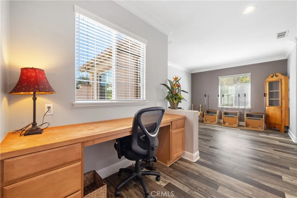 Welcome to your dream home—where style, comfort, and entertaining come together beautifully! This stunning single-story home in Crowne Hill features a show-stopping, fully upgraded kitchen and an open-concept layout designed for effortless living and unforgettable gatherings. At the heart of the home is the entertainer’s dream kitchen, showcasing White Galaxy granite countertops, a spacious island with seating for five, custom cabinetry with elegant rainwater glass doors, and a striking glass subway tile backsplash. Enjoy all-new matching KitchenAid stainless steel appliances, including the refrigerator, along with a gas cooktop, designer stainless hood, double ovens, beverage refrigerator, and champagne-glow pendant lighting that adds the perfect touch of warmth and sophistication. The kitchen flows seamlessly into the inviting family room, complete with a cozy fireplace, built-in media center, and surround sound speakers—ideal for movie nights or hosting guests. In addition, the oversized living room—currently set up as a Pilates studio—offers incredible flexibility and space, making it perfect for large gatherings, celebrations, or whatever fits your lifestyle best. Step outside to your private, low-maintenance backyard oasis featuring a covered lanai, ample patio space for dining and BBQs, and outdoor surround sound to keep the good times going. Throughout the home, you’ll find beautiful travertine tile and neutral carpeting that complement any style. The luxurious primary suite offers a private foyer entry, spa-inspired ensuite with dual sinks, granite countertops, soaking tub, separate shower, dual closets, and a private water closet—your perfect retreat at the end of the day. The thoughtfully designed guest wing includes two bedrooms, a full bath, a built-in office area, and a separate entertainment space—ideal for multigenerational living or visiting guests. Located in the highly desirable Crowne Hill community, this home offers low taxes, a modest HOA, and convenient access to top-rated schools, shopping, dining, Pechanga Resort, and Temecula’s renowned Wine Country. This is more than just a home—it’s a lifestyle upgrade waiting for you to enjoy every single day!