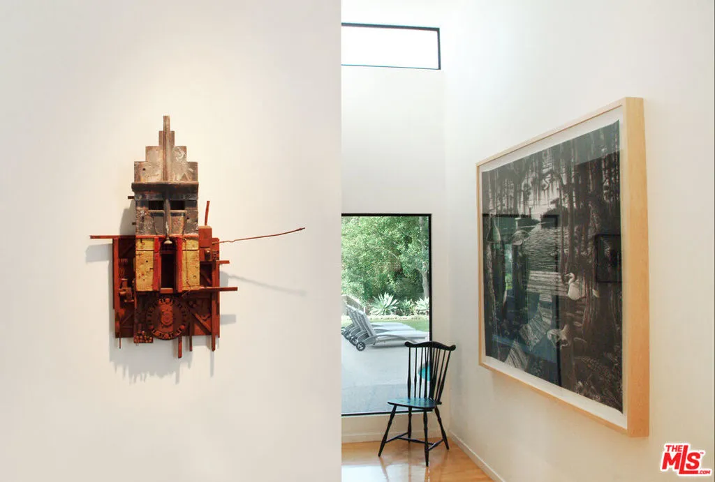 Discover an architectural masterpiece nestled in the serene Lower Brentwood Hills, as featured in Los Angeles Houses and Sunset Magazine. This stunning home epitomizes the best of indoor/outdoor living, with large glass sliding doors opening to its beautifully landscaped yard, treetop and distant ocean views, and an array of luxurious outdoor amenities. The backyard oasis boasts a saltwater pool, cedar deck, private spa, outdoor shower and a built-in BBQ area, creating the perfect setting for entertaining. Every room inside this 4-bedroom, 4-bathroom residence is bathed in natural light including a spacious 400 sq ft family room/office/media room just off the pool area. The cook's kitchen is a culinary delight, equipped with Syndecrete counters, a breakfast nook, top-of-the-line appliances, and opens to a second large cedar deck for easy al fresco dining. The home is adorned with maple hardwood floors and offers ample storage throughout. Additional features include a state-of-the-art security system, a whole-house LifeSource water filtration system, and a large 2-car garage with extra storage space. This exceptional secure hilltop property offers the ultimate in luxury living with quick and convenient access to all of the award-winning restaurants, markets, schools, boutiques, salons, and health clubs that the Westside has to offer.