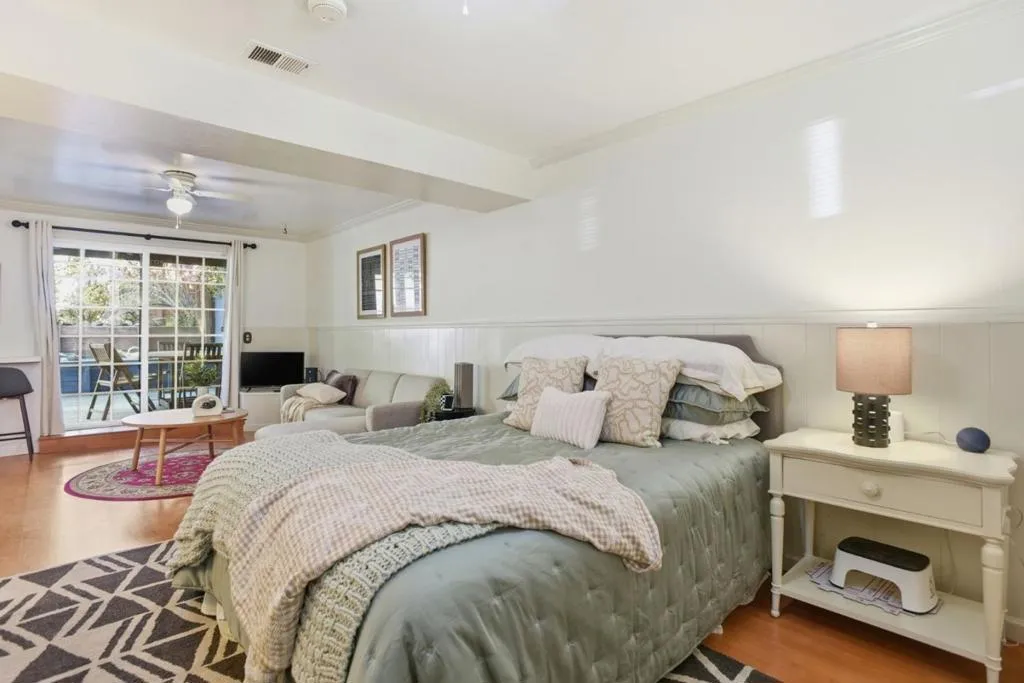 Nestled in Pacificas desirable sun belt, this warm and inviting home offers comfort and charm in a serene setting. The living room, complete with a classic fireplace, flows seamlessly into the dining area and into a bright sunroom an ideal spot to enjoy year round garden views. Fresh interior and exterior paint create a crisp, move in ready feel. The kitchen features granite countertops, beautiful wood cabinetry, and hardwood floors that continue throughout, adding timeless appeal. Upstairs you'll find three well appointed bedrooms and two updated full bathrooms. The lower level offers exceptional versatility with a spacious bonus room perfect as an additional bedroom, family room, or guest space along with a third full bath and direct access to a private patio. Step outside to a beautifully cultivated orchard with a variety of fruit trees and shrubs, creating a peaceful retreat for relaxation or entertaining. Located just five minutes from hiking trails and the beach, this home offers the perfect blend of nature, comfort, and convenience. Enjoy an easy and scenic ocean view commute to San Francisco and the Peninsula, with convenient access to BART and Caltrain for added flexibility.