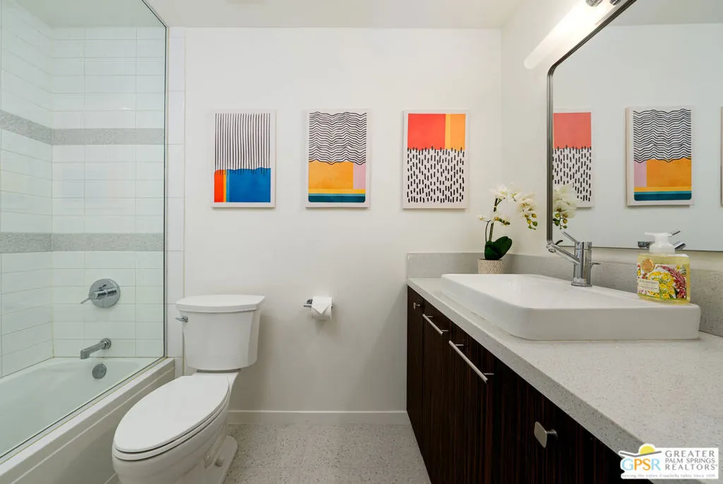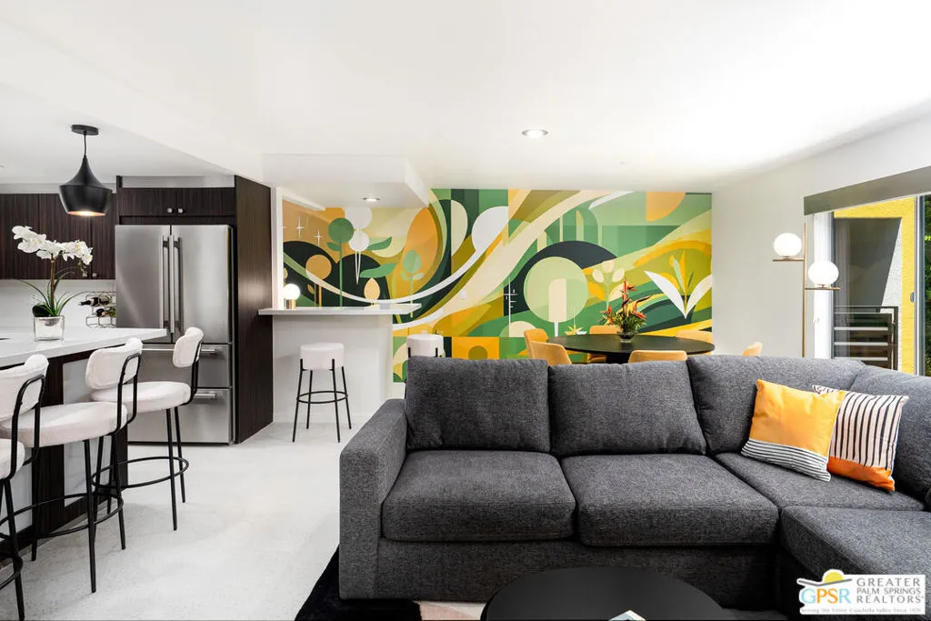 This is the largest residence in the community - and one of the most compelling opportunities currently available! Unit 206 at Querencia Palms delivers expansive living, stunning south-facing valley views, and a layout designed to stand out. From the private balcony, take in sweeping views across the valley while natural light pours into the home throughout the day. Inside, the open-concept design seamlessly connects the kitchen, dining, and living spaces, anchored by an oversized bar that creates the perfect setting for entertaining or unwinding in style. Thoughtful design elements, including custom wallpaper, complement the lush greenery just outside, giving the home a bright yet serene, retreat-like feel. Both the primary and guest bedrooms feature generously sized closets - offering a level of storage rarely found in the community. Offered furnished, this is a turnkey opportunity for a buyer looking to step into both comfort and value from day one. Set within a tranquil, resort-style environment with flowing water features, a koi pond, pool, spa, and fire pits, Querencia Palms offers a lifestyle that feels both elevated and relaxed. All just minutes from Downtown Palm Springs, dining, parks, and the CV Link. With limited inventory and strong interest across the community, opportunities like this, especially the largest unit available, don't last! Schedule your private showing today.