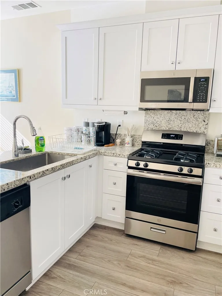 Welcome to Concord at River Village, one of Santa Clarita's most sought-after planned communities, where newer construction meets everyday convenience in a setting that genuinely delivers. Built in 2020 by Lennar, this thoughtfully upgraded 2-bedroom, 2.5-bath townhome with loft spans 1,430 square feet of well-designed living space, and it is move-in ready. The main level impresses immediately with an open-concept layout bathed in natural light. Upgraded flooring flows throughout, recessed lighting sets a clean, modern tone, and the kitchen anchors the space beautifully with white shaker cabinetry, granite countertops, stainless steel appliances, and a large center island that transitions seamlessly from morning coffee to entertaining. Upstairs, the primary suite offers a generous walk-in closet and a dual-sink en-suite bath. A second bedroom and full bath provide comfortable accommodations for guests or family, while the loft adds meaningful flexibility as a home office, media lounge, or additional living space that adapts to how you actually live. Laundry is conveniently located on the upper level. Smart home features are built in from the start: tankless water heater, smart thermostat, and video doorbell. The direct-access two-car garage completes the package. Positioned just steps from the community pool, spa, park, and clubhouse, with access to over 30 miles of connected paseos and the Santa Clara River Trail, and easy reach of the I-5 for LA commuters. The complex is VA-approved and warrantable, opening the door to the widest range of buyers and financing options. This is newer construction quality, smart home ready, in a master-planned community with resort amenities. It checks every box.