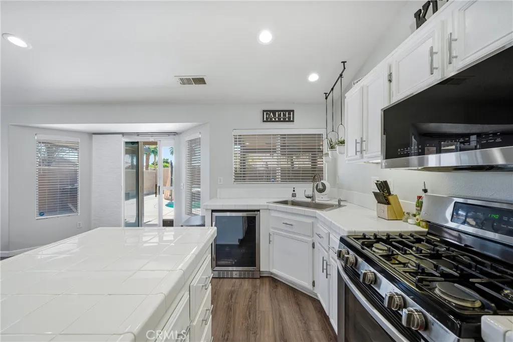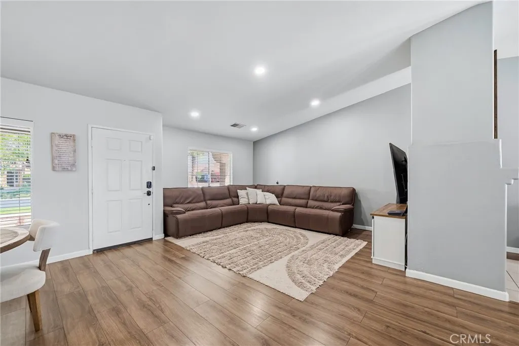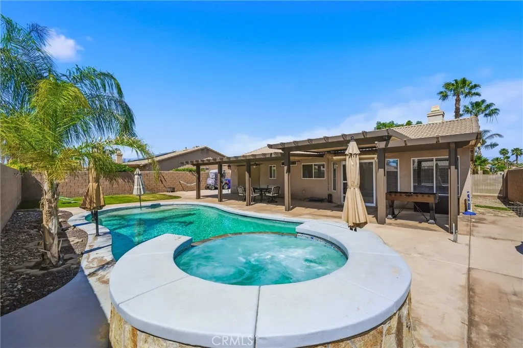 Welcome to resort-style living meets modern comfort in the heart of the vibrant Coachella Valley. This beautifully updated single-story home offers an unparalleled indoor-outdoor lifestyle, making it the perfect sanctuary for relaxation and entertainment. Step inside and be greeted by a bright and airy open-concept living room, featuring soaring vaulted ceilings, rich wood-look flooring, and a neutral color palette that creates a fresh and inviting atmosphere. The spacious living area flows seamlessly into the kitchen, which is truly the heart of the home. Boasting crisp white cabinetry, sleek countertops, stainless steel appliances, and an island with bar seating, it’s a space designed for gathering. A cozy fireplace and a separate dining area provide ample room for both intimate dinners and festive celebrations. The home’s thoughtful design extends to the private quarters. The primary suite is a true retreat, featuring a stunning, hand-painted mountain mural that evokes a sense of tranquility. Best of all, it offers direct sliding-door access to the backyard, allowing you to wake up and step right into your personal paradise. The additional bedrooms are equally stylish, with one showcasing a dramatic geometric accent wall, offering comfortable and chic spaces for all. Prepare to be captivated by the spectacular backyard. This private, fully-fenced oasis is an entertainer's dream, centered around a sparkling, freeform pool complete with a cascading spa waterfall. Lounge under the shade of the expansive covered patio, enjoy a barbecue with friends, or play games on the lush lawn surrounded by mature palm trees. This is the epitome of desert living. Located in a quiet Indio neighborhood, you are just moments away from world-class golf, hiking trails, and the renowned dining and entertainment that make the Coachella Valley a premier destination. Experience the perfect blend of style, comfort, and location. Your desert dream home is here!