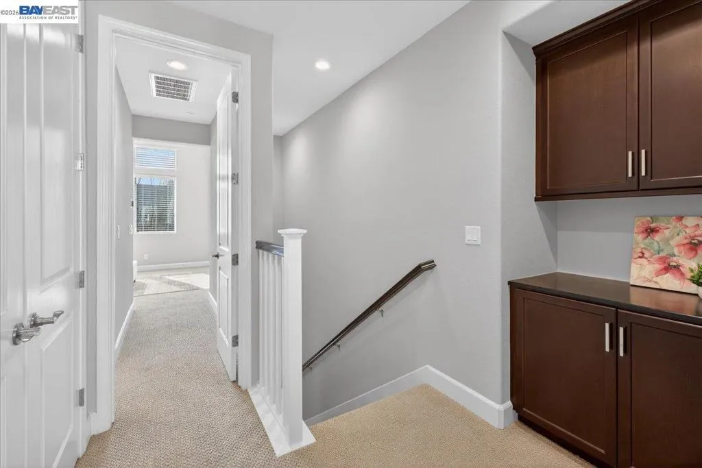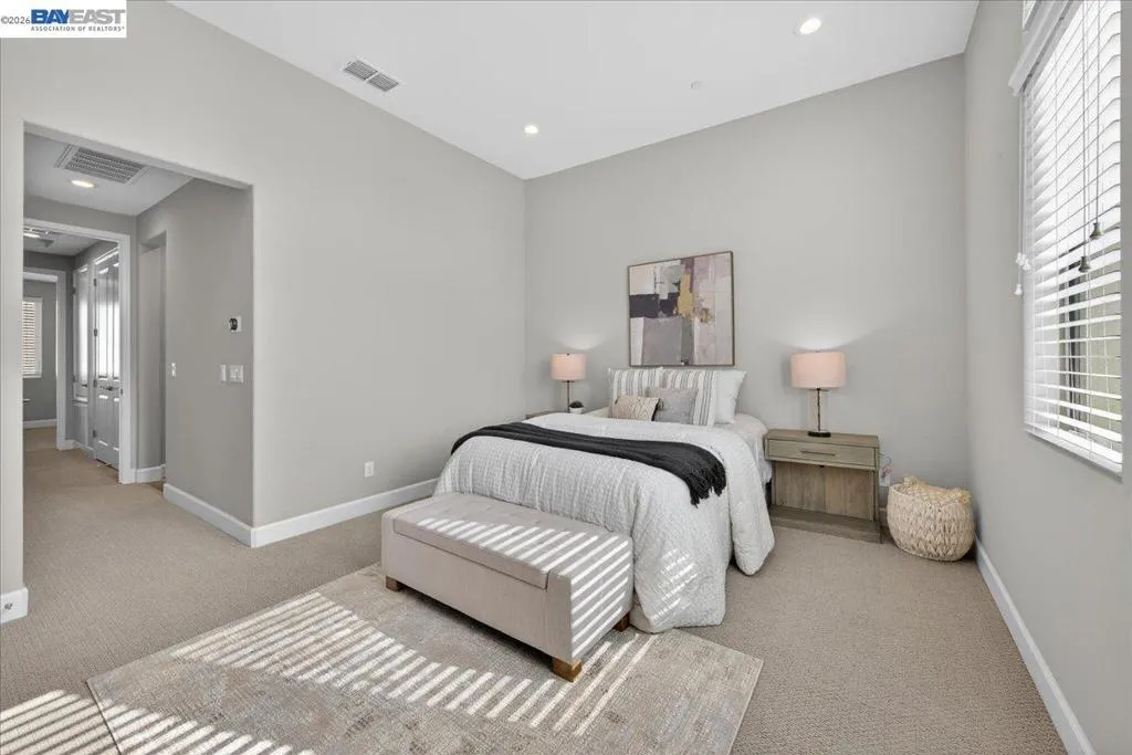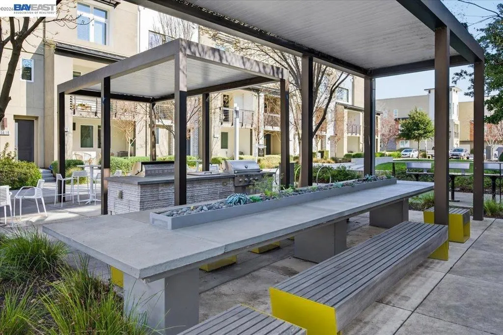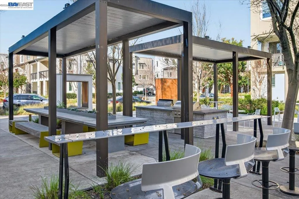 Absolutely stunning 3bdrm/3.5ba townhome offering 1,719 sq ft of refined living in a premier interior location within the highly sought-after Boulevard Community. Each bedroom features its own private en-suite bath, including a full bedroom and bathroom on the main level—ideal for guests, multi-generational living, or a private home office. This residence showcases upgraded hardwood floors, plush luxury carpet, designer bathrooms, and a beautiful chef’s kitchen with quartz countertops, a meal prep island, and elegant marble tile backsplash. A covered balcony off the kitchen overlooks the serene greenbelt, perfect for everyday relaxation or entertaining. The front entrance opens directly to the greenbelt, creating a park-like extension of your living space. Right next to the greenbelt is a community outdoor gathering area, “The Kitchen,” featuring 2 gas BBQs, bar seating, and dining areas—ideal for celebrations and social gatherings. Additional highlights include ample guest parking and an attached two-car side-by-side garage. Enjoy the resort-style amenities just steps away, including a pool, two fitness centers, clubhouse, meeting rooms, and the expansive 31-acre Don Biddle Park. Prime location near top schools, shopping, dining, and walk to BART. THIS IS A MUST SEE!