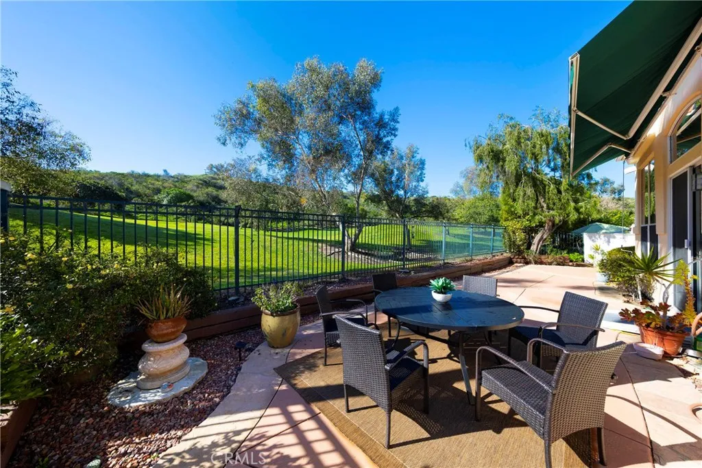 Rare and highly sought-after villa located on the 13th fairway of San Juan Hills Golf Course! Relax and enjoy peaceful moments surrounded by majestic trees, rolling green hills, and the soothing sounds of birdsong. Enter through a private gated courtyard featuring lush landscaping and an attractive flagstone surface. Inside, you’ll be impressed by the bright, open feel created by abundant windows and soaring ceilings. The open floor plan is ideal for both everyday living and intimate gatherings, seamlessly connecting the living room, dining area, and kitchen. The kitchen features abundant cabinetry, a spacious pantry, a center island for convenient meal preparation, and direct access to the backyard—perfect for enjoying the stunning views. The spacious living room offers a cozy fireplace and built-in cabinetry for optimal storage. The primary suite is generously sized and includes a luxurious bathroom with dual sinks, a soaking tub, a separate shower, and a large walk-in closet. A sliding glass door provides direct access to the lush backyard. A versatile den—complete with built-ins for closet or storage use—can easily serve as a third bedroom or home office. The secondary bedroom and bathroom are thoughtfully positioned on the opposite side of the home, offering maximum privacy. The garage provides ample storage space. This is a completely detached condo. Located in a highly coveted community, this home is just moments from all that San Juan Capistrano has to offer. Don’t miss this exceptional opportunity!