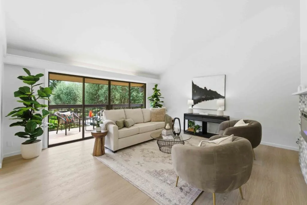 Welcome to The Ninth Green, a private gated community of just 21 residences ideally positioned alongside the prestigious San Jose Country Club in the scenic East Foothills. This beautifully updated 2-bedroom, 2.5-bath townhome offers a rare blend of privacy, natural surroundings, and timeless elegance. The main level features vaulted ceilings, abundant natural light, and a seamless connection between the living and dining areas, with sliding glass doors opening to a spacious balconyperfect for indoor-outdoor living. The updated kitchen showcases white cabinetry, updated countertops & backsplash, stainless steel appliances, and modern lighting, while an updated fireplace adds warmth and a contemporary touch. Downstairs, two spacious bedrooms and two full baths include a beautifully updated primary suite with walk-in closet, new dual vanity, and updated tile shower. Both bedrooms open to a private patio and lawn, creating a peaceful, nature-filled setting. Additional highlights include central A/C and a rare 2-car garage plus separate golf cart garage. Residents enjoy a community pool and lounging area, all just moments from Alum Rock Park, hiking trails, major freeways, and Berryessa BART.