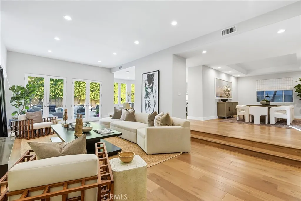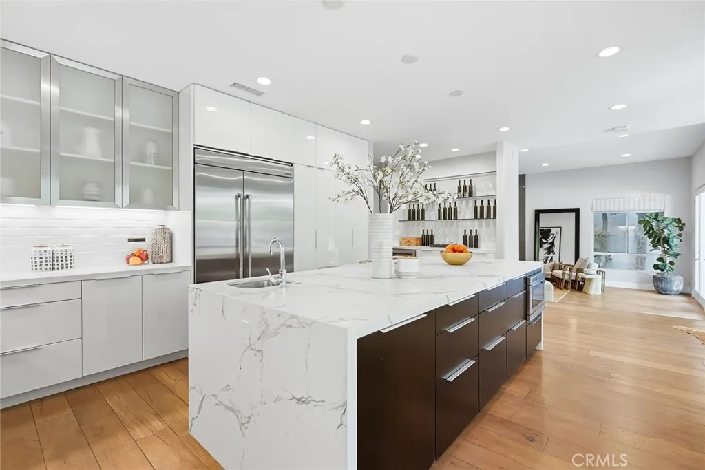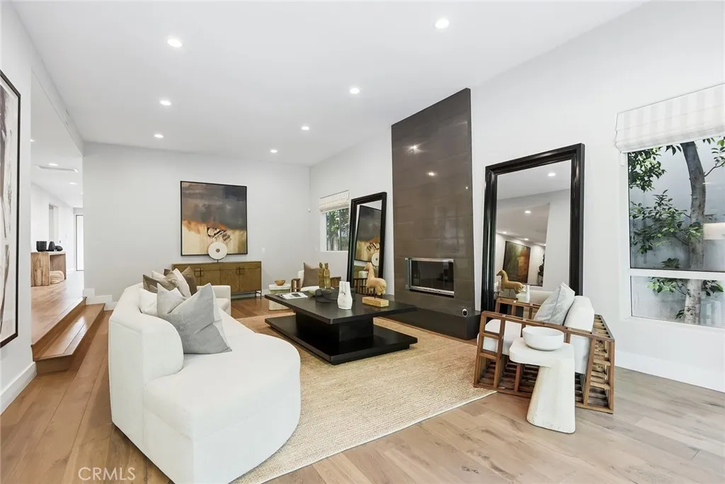 Striking, one-of-a-kind, fully remodeled residence located south of Ventura Blvd in Encino, offering exceptional scale, privacy, and refined design. Featuring 5 bedrooms plus an office (potential 6th) and 5.5 baths across approximately 5,224 square feet. A double door entry opens to a dramatic formal living room with soaring ceilings and beautiful wood floors that carry throughout. A thoughtfully designed floor plan offers distinct living and entertaining spaces, including a generous formal dining room, formal living room, and expansive family room. The chef’s kitchen is both functional and inviting, anchored by an oversized center island with eat-at bar, sink and dishwasher, designer countertops, a breakfast nook, built-in professional refrigerator, and high-end stainless steel appliances. Thoughtfully designed for both everyday living and elevated entertaining, the home offers multiple gathering spaces with effortless flow to the outdoors. Fireplaces in the living room, family room, and primary suite add warmth and character throughout. The private backyard is a true retreat, complete with a pool, built-in BBQ, and dedicated cooking area—ideal for hosting or unwinding. Upstairs, an elegant staircase leads to four spacious en-suite bedrooms, each with walk-in closets. Three balconies invite in natural light and enhance the indoor-outdoor connection. The expansive primary suite is a true retreat, featuring a fireplace and a spa-inspired bath with dual walk-in closets, a vanity area, separate shower, soaking tub, and private water closets with bidet. Additional features include an attached 2-car garage and a well-executed floor plan designed for both everyday living and elevated entertaining. Ideally located south of Ventura Blvd with close proximity to the Westside—approximately 15 minutes to UCLA, 20 minutes to West LA, and 25 minutes to Santa Monica and the coast. Just moments from Ventura Blvd’s top dining and shopping, this home offers a rare combination of space, privacy, and location in one of Encino’s most sought-after neighborhoods.