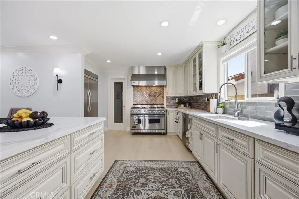Welcome to 22921 Adolph Avenue, an exceptional Mediterranean-inspired residence nestled in a quiet, sought-after pocket of South Torrance. Framed by lush, mature landscaping and timeless architectural charm, this 5-bedroom, 4-bathroom home offers the perfect blend of elegance, space, and effortless indoor-outdoor living. Step inside to soaring ceilings and an elegant, statement staircase that immediately sets the tone. Flooded with natural light, the home feels bright, open, and inviting at every turn. The thoughtfully designed floor plan flows seamlessly, ideal for both everyday living and elevated entertaining, complemented by stunning 9-inch wide plank flooring that adds warmth and a modern touch throughout. At the heart of the home is a true chef’s kitchen, beautifully upgraded with new custom cabinetry, sleek quartz countertops, a premium Viking oven, built-in KitchenAid refrigerator, and a spacious walk-in pantry. Designed for both function and style, this space opens effortlessly to the living and dining areas, creating a cohesive and welcoming environment. Expansive bifold doors blur the line between indoors and out, leading to a private, sun-drenched backyard. Enjoy serene outdoor living beneath the pergola, surrounded by lush greenery that enhances both privacy and tranquility - perfect for relaxing or hosting gatherings year-round. The spacious primary suite is a true retreat, offering two generous closets and a massive, spa-like bathroom. Thoughtfully updated bathrooms throughout the home feature refined finishes and a clean, modern aesthetic. Each additional bedroom is well-proportioned, providing flexibility for guests, family, or a home office. Complete with a 2-car garage and situated just moments from Lago Seco Park, located within the acclaimed Torrance School District - this home offers both convenience and a peaceful neighborhood setting. A rare opportunity to own a light-filled, beautifully upgraded home in one of South Torrance’s most desirable communities.