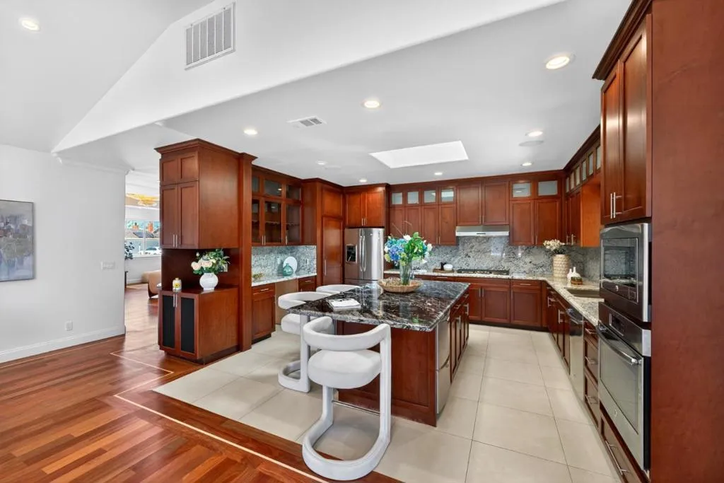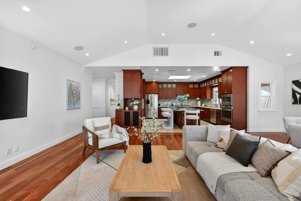 Architectural Masterpiece with Expansive Living in Glenmoor. This beautifully upgraded home blends space, functionality, and timeless design. Fully remodeled in 2013, it offers quality improvements throughout and a flexible, highly desirable layout. Featuring 4 bedrooms, 4 bathrooms, and two spacious living areas, the home offers approx. 2,600+ sq ft of living space on an expansive 8,025 sq ft lot. Soaring ceilings, including a 10-ft front living room and 14-ft rear family room, create a bright, open atmosphere. The well-appointed kitchen features GE 36" appliances and flows seamlessly into the dining and living areas, ideal for everyday living and entertaining. Three en-suite bedrooms provide flexibility for multi-generational living or guests. The oversized primary suite includes a spacious bathroom and walk-in closet, designed for comfort and privacy. Additional upgrades include updated electrical and plumbing systems, an EV charger, and a water filtration system. The backyard offers a private, garden-like setting with abundant fruit trees on a generous lot. Don't miss this thoughtfully designed and meticulously built home!