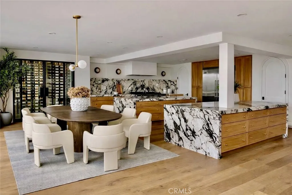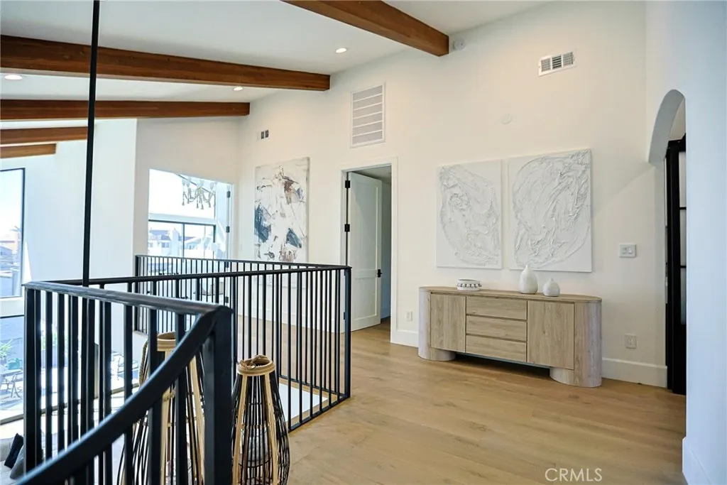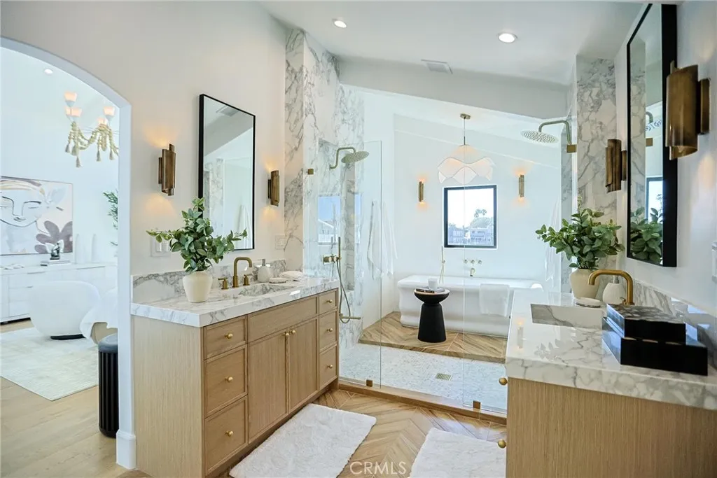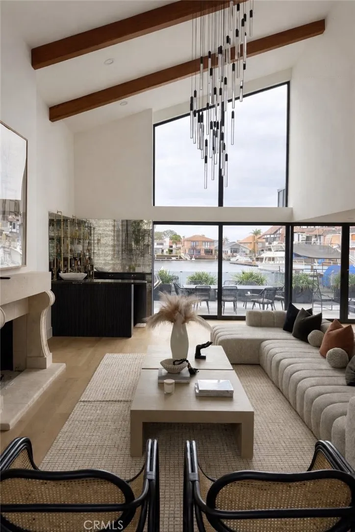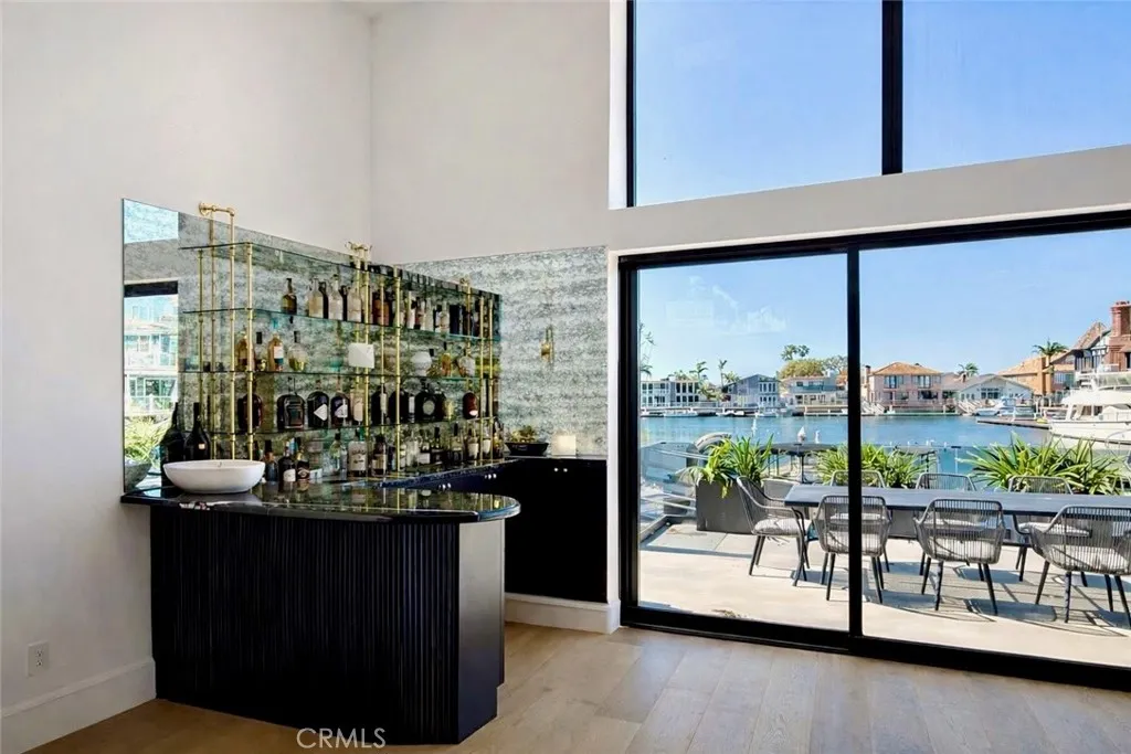 A rare opportunity to own a fully reimagined waterfront residence in Huntington Harbour that has been taken down to the studs and rebuilt with curated designer finishes throughout—complete with a complete with a 50’ private dock. This home showcases a level of craftsmanship and design rarely found in the harbour, delivering a bespoke, estate-quality living experience. A privately gated entry welcomes you through a charming courtyard and Dutch front door into a light-filled residence defined by soaring vaulted ceilings, exposed beams, and walls of glass framing tranquil water views. The entire waterfront-facing wall is composed of expansive pocket sliding doors that disappear completely, creating a seamless indoor-outdoor environment ideal for elevated entertaining and effortless coastal living. This 5-bedroom, 4.5-bath home is thoughtfully designed for both luxury and flexibility, featuring a main-level ensuite bedroom with its own private entrance—ideal for guests, extended family, or office use—along with a 3-car garage and laundry rooms on both levels for ultimate convenience. The chef’s kitchen is a true centerpiece, equipped with a Viking range, 60” Sub-Zero refrigerator, dual waterfall-edge Viola marble islands, and two fully outfitted pantries. Designer details continue throughout with a temperature-controlled wine display wall and a sophisticated bar finished with vintage mirrored panels and brass accents. Upstairs, the primary suite offers a private waterfront balcony and a spa-inspired bath with dual walk-in showers and an oversized freestanding soaking tub positioned beside a picture window capturing serene harbor views. Seamless indoor-outdoor living unfolds to a resort-style waterfront patio featuring a fully equipped outdoor kitchen with pizza oven, BBQ, cooktop, and refrigerator—perfect for entertaining. A private 50-foot boat dock provides direct access to the harbor, while sunsets paint the backdrop nightly. Ideally positioned just moments from sandy beaches, scenic coastal parks, and harborfront pathways, this home captures the essence of Southern California’s indoor-outdoor lifestyle. Located within walking distance to Trader Joe’s, shopping, dining, parks, and schools, this turnkey residence offers the perfect blend of modern design, waterfront living, and everyday convenience in one of Huntington Harbour’s most desirable settings.