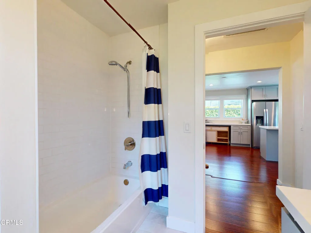 This fully remodeled Craftsman home blends timeless character with a modern open floor plan. Original details like coffered ceilings, crown moldings, and built-in woodwork highlight the home's historic charm, while a comprehensive 2019 interior renovation brings contemporary comfort and style. The open layout connects the living room, dining area, and kitchen, creating an ideal space for everyday living and entertaining. The kitchen features custom cabinetry, stainless steel appliances, quartz countertops and a center island. Bedrooms are generously sized, and the primary suite includes a walk-in closet and a beautifully updated en-suite bathroom. Additional features include dual-pane windows, central HVAC, and a conveniently located stacked laundry closet. Recent upgrades include a newer roof and gutter system, energy-efficient water heater and HVAC systems, upgraded attic insulation, and a newer electrical panel. The home and garage exterior were freshly painted in 2024. The private, gated property offers a spacious backyard with mature avocado and guava trees, an English rose garden and pollinator-friendly landscaping. Ideally located near West Adams, Baldwin Hills, and Leimert Park with convenient access to Downtown LA, Culver City, USC, the Natural History Museum, and popular dining destinations including Jon & Vinny's, Highly Likely, Issa Rae's Somerville, and Maydan Market.
