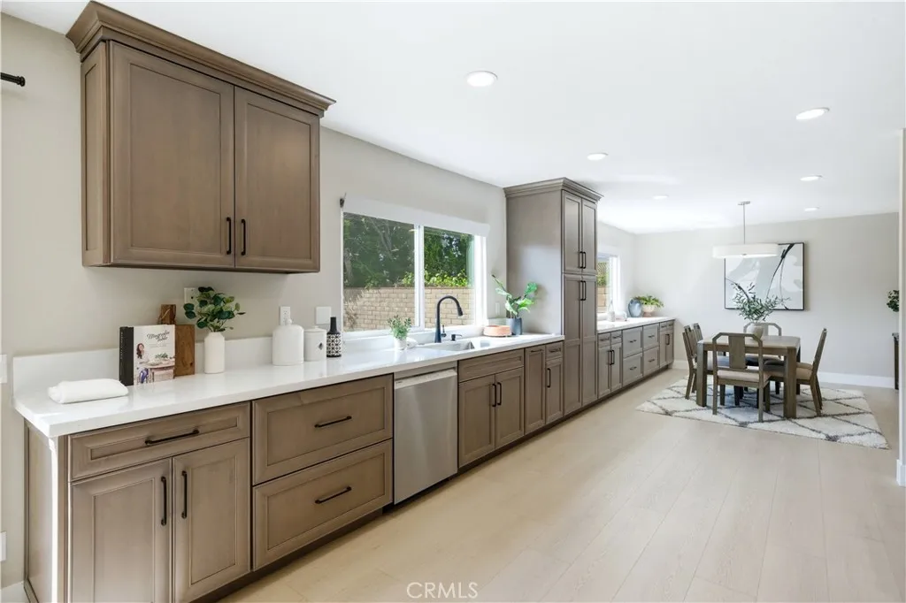 This fully remodeled two story, 4-bedroom, 2.5-bath home offers 2,192 square feet of thoughtfully updated living space with a functional layout designed for both everyday living and entertaining. A double door entry leads into a bright living room that flows seamlessly into the living room and dining area, enhanced by natural light and clean, modern finishes throughout. The remodeled kitchen is a standout with quartz countertops, stainless steel appliances, recessed lighting, and an open connection to the family room. Just off the kitchen, the family room features a cozy fireplace and sliding glass doors that open directly to the backyard creating ideal indoor-outdoor flow. Upstairs, all four bedrooms provide privacy and comfort, including a spacious primary suite with a walk-in closet with built-ins and an updated ¾ bathroom with dual sinks. A fully remodeled hall bathroom serves the additional bedrooms, while a convenient ½ bathroom is located downstairs for guests. Step outside to a generously sized backyard with a large grassy area, patio space, and a built-in fire pit perfect for entertaining, relaxing evenings, or enjoying the Southern California lifestyle. The property also offers foothill views and a sense of openness rarely found in the neighborhood. Additional features include central AC, dual pane windows, fresh interior and exterior paint, and a 3-car attached garage with direct access. Located in a well-established Glendora neighborhood with no HOA, this home offers convenient access to local schools, parks, shopping, and commuter routes.