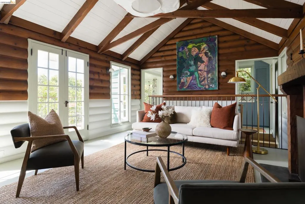 Featured in Architectural Digest, this brilliantly reimagined hillside home in Oakland’s coveted Glenview neighborhood reflects a rare and refined vision of preservation and contemporary design. An innovative collaboration between McGriff Architects and Becky Carter Interior Design Studio celebrates the character of the original 1932 home with extensive upgrades throughout. The 3-bed, 3-bath main residence preserves the cabin's quiet charm while revealing a carefully layered architectural transformation within. The light-filled living room remains the heart of the home, framed by exposed beams and an original flagstone fireplace, and flows onto a private deck retreat perched among majestic oaks with expansive views reaching the Bay and the peaceful glen below. The kitchen and dining areas embrace crafted simplicity and character-forward design, reflecting the home’s joy, warmth & thoughtful detailing. An expanded lower level offers modern, private quarters with convenient laundry, enhancing both livability and flow. A complementary detached studio cottage with its own kitchen, bathroom, and deck offers an inviting space perfect for guests, WFH, or a quiet retreat. Together, architecture, interior design, & nature create a home that feels both timeless and quietly extraordinary.