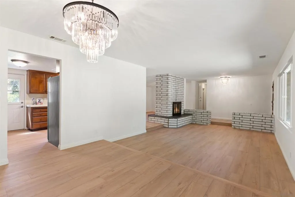 Tucked among mature trees and lush greenery, this single-level home sits on over half an acre in the heart of Fallbrook and offers a rare sense of warmth, history, and connection to the land. Featuring 3 bedrooms, 2 bathrooms, and 1,728 square feet of living space, the home has been lovingly owned by the same family since it was built in 1977. Sunlight fills the home through large windows, highlighting the inviting living spaces and a classic brick fireplace that serves as a central gathering place. Recent updates include fresh interior paint and new flooring, creating a light and refreshed feel while still preserving the home’s original character. The kitchen offers a functional layout with ample cabinetry and easy access to both the main living areas and the backyard. A covered patio with exposed wood beams extends the living space outdoors, offering an ideal setting for relaxing, entertaining, and enjoying the surrounding landscape. The expansive lot provides space for gardening, outdoor living, or simply embracing the quiet, open setting. A special opportunity to own a home with deep roots in one of Fallbrook’s most established neighborhoods.