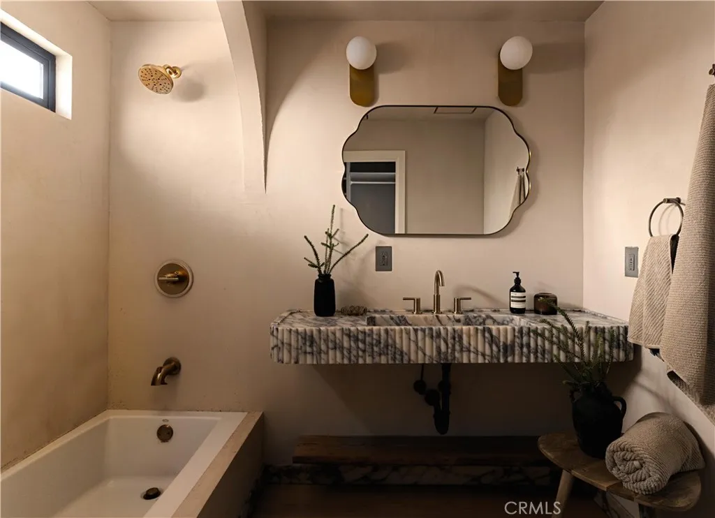 Tucked into one of Atwater Village’s most desirable pockets, this fully remodeled 3-bedroom, 2-bath home blends thoughtful design with timeless character. A clean, modern exterior sets the tone, leading into a light-filled interior defined by vaulted ceilings, skylights, and an effortless open flow. The living spaces feel both airy and inviting, with soft natural light pouring in through expansive windows and sliding doors. Subtle architectural details, arched openings, built-in shelving, and warm wood tones, add depth and character throughout. At the heart of the home, the kitchen is beautifully executed with custom cabinetry, striking marble countertops and a full marble backsplash, paired with high-end appliances to create a space that’s as functional as it is visually compelling. Both bathrooms are designed with a refined, spa-like approach, featuring microcement finishes for a seamless, modern feel, complemented by custom Calacatta Viola marble sinks and matching marble baseboards. Curated fixtures and a cohesive material palette elevate each space with a quiet sense of luxury. Step outside to a generously sized yard, thoughtfully designed as a private retreat, ideal for relaxing or entertaining. The oversized two-car attached garage provides convenience, flexibility, and additional storage. A rare opportunity to own a move-in ready home with designer finishes, strong indoor-outdoor flow, and a prime Atwater Village location just moments from Glendale Blvd, local favorites, and everything the neighborhood has to offer.