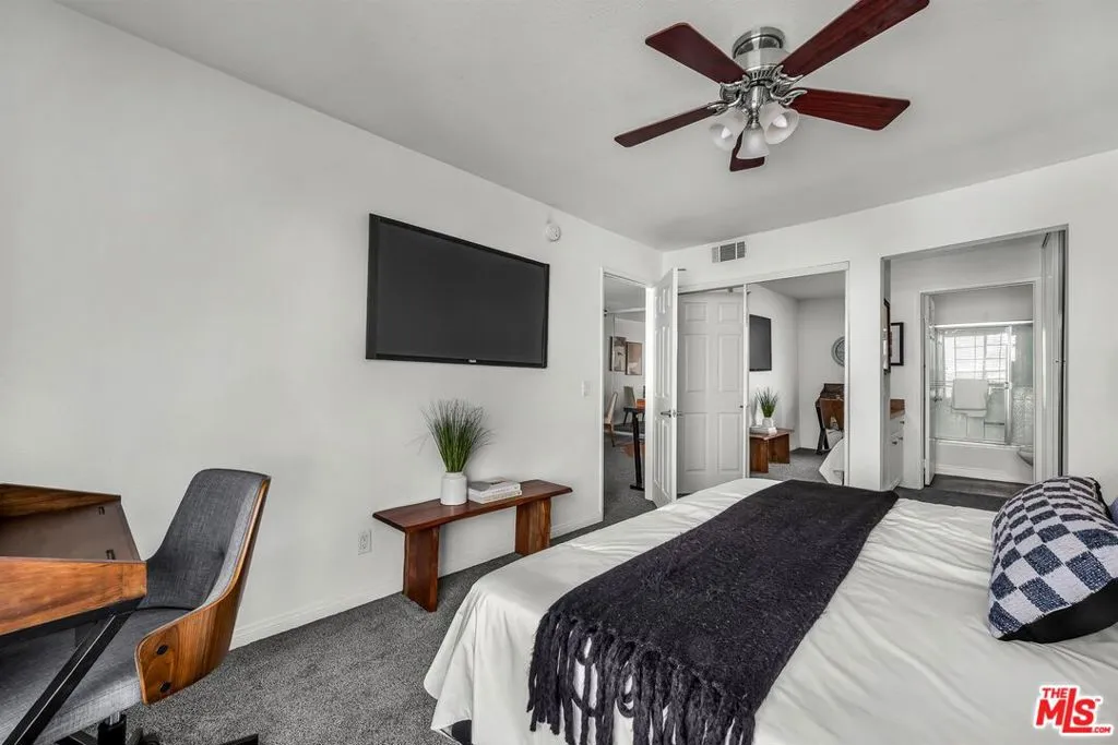 Experience resort-style living in the guard-gated community of The Met in Woodland Hills. This rare top-floor corner penthouse offers exceptional privacy, abundant natural light, and an open, airy layout, complete with a private balcony ideal for seamless indoor-outdoor living. Inside, the home features a stylish wood-laminate entry, plush carpeting, fresh paint throughout, and soaring vaulted ceilings that enhance the sense of space. The inviting living room is centered around a striking corner fireplace and flows effortlessly to the balcony through sliding glass doors. The updated kitchen boasts sleek cabinetry, granite countertops, a microwave, dishwasher, and a nearby dining area perfect for hosting. The spacious primary suite includes dual mirrored closets and an en-suite bathroom with a granite vanity. Additional highlights include two assigned covered tandem parking spaces located beneath the building. Residents enjoy an array of resort-style amenities, including multiple pools, a spa and sauna, six lighted tennis courts, racquetball courts, a fully equipped fitness center with showers, a sport court, playground, meeting room, and ample guest parking all within a secure, 24-hour guard-gated community. Ideally situated in Warner Center, this home is just moments from premier shopping, dining, and transit, including Westfield Topanga, The Village, and Costco. Located in one of the area's most desirable communities, this exceptional penthouse is truly a must-see.
