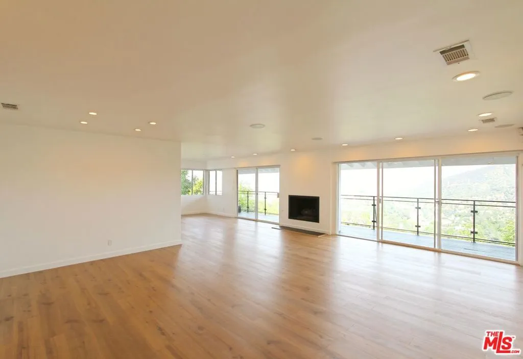 EXPLOSIVE VIEWS AS FAR AS THE EYE CAN SEE! CITY LIGHTS, THE HOLLYWOOD SIGN, AND MORE! Just moments from the top entrance to Runyon Canyon Park, this is a dream setting for hikers and anyone who craves that perfect blend of nature and city energy. The view from the moment you enter will. take your breath away! Inside, the open entertainer's floor boasts newly updated flooring and lighting to set the tone, while smart home features including an energy saving Nest system, keypad entry, wired sound, home theatre capability, and Apple TV integration create a seamless, modern lifestyle. A fireplace adds warmth and ambiance, and dramatic walls of glass frame the sweeping city and mountain views, turning every sunset into a private show.The kitchen is sleek and well appointed with stainless steel appliances including a Viking stove and oven, and offering direct access to the refinished two car garage with washer and dryer for effortless convenience.The primary suite features a walk-in closet and a beautifully updated bath with a steam shower designed to unwind and indulge. Sliding doors open to a view deck where mornings feel serene and evenings feel exciting. The spacious guest bedroom is just opposite another stylishly updated bath and flows out to a newly refinished patio and BBQ. Set in a prime Hollywood Hills location near transportation, hiking, dining, shopping, and the best of the city's entertainment, this home delivers drama, sophistication, and undeniable allure. 13-month minimum lease required.