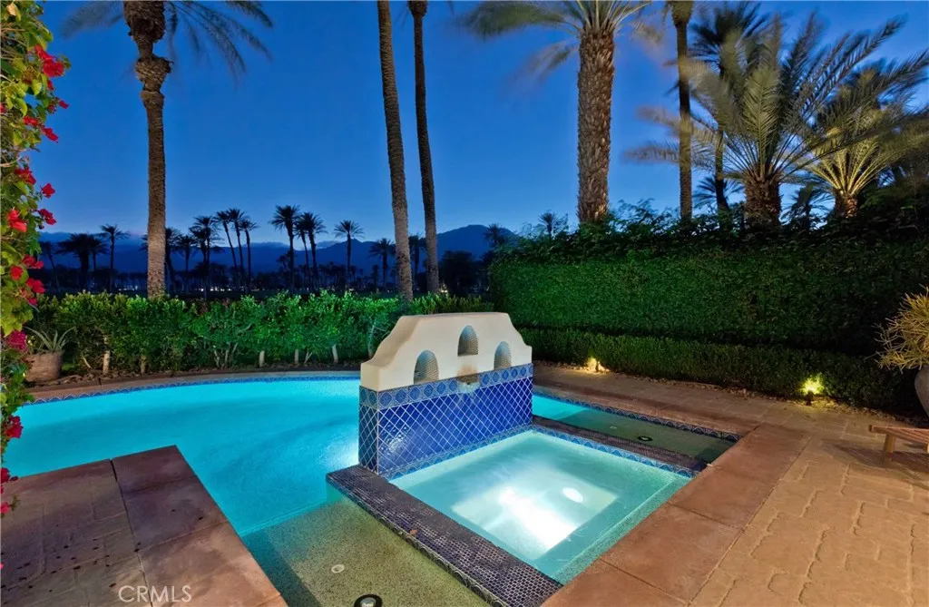 Rates VARY BY MONTH! THE PROPERTY HAS BEEN PROFESSIONALLY INTERIOR DESIGNED - NEW INTERIOR PHOTOS SOON! Imagine waking up to breathtaking mountain vistas, the emerald expanse of a world-class golf course unfolding before you, and the sun warming your skin through expansive glass doors. This Spanish-style masterpiece, nestled within one of the finest Players Golf Clubs in the country, isn't just a home; it's an invitation to a life of tranquility and unparalleled luxury. Step into a soaring cathedral ceiling crowned with rustic wood beams, where the line between indoors and outdoors gracefully blurs. A wall of disappearing glass doors invites the desert in, painting your living space with the vibrant hues of the fairway and distant mountains. Gather around the oversized island in the chef's kitchen, Viking appliances glinting under the pendant lights, as you share laughter and stories with loved ones. The raised dining room, warmed by a crackling fireplace, promises elegant evenings under a starry sky. Your private sanctuary awaits in the oversized primary suite. Wood beams add warmth, while dual doors open to reveal a breathtaking panorama of the pool, spa, golf course, and mountains. Start your day invigorated by this vista, the desert air whispering through palm trees. This home caters to every desire. An exercise room keeps you energized, while a private guest ensuite with its patio offers a peaceful retreat for visitors. The casita, accessible from the courtyard, beckons with a fireplace, kitchenette, and family room – the perfect haven for creating lasting memories with loved ones. Outside, your desert oasis unfolds. Bask in the sun on the covered patio, the scent of blooming bougainvillea filling the air. Take a refreshing dip in the private pool, warmed by the desert sun, or melt away stress in the soothing embrace of the spa under a canopy of stars. This is more than just a home; it's an experience. It's the thrill of teeing off on a championship course, the serenity of watching desert sunsets paint the sky with fiery hues, and the joy of sharing laughter and connection with loved ones in your private paradise.