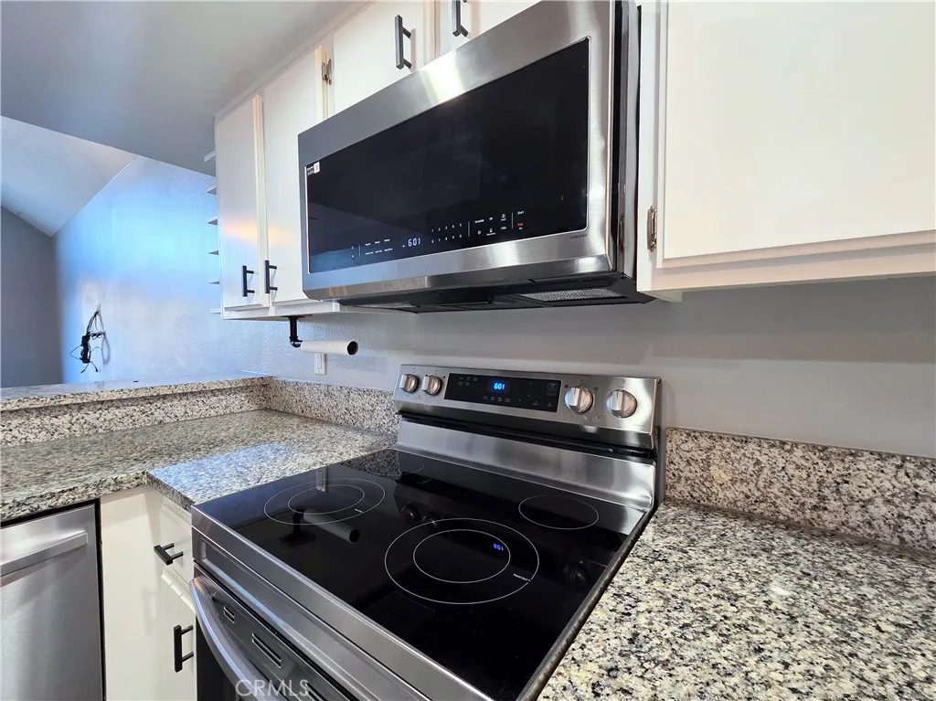 Beautiful 1-bedroom, top-floor condo located in Queen’s View Commons, a private, gated condominium community just blocks from downtown Long Beach and minutes from the beach. This well-maintained community offers secured entry, elevator access, gated covered parking, and a variety of amenities designed for comfortable living. Unit #306 features an open and airy layout highlighted by dramatic 15-foot vaulted ceilings in the living area, creating a bright and spacious feel. The interior has been updated with a modern paint scheme, laminate flooring throughout the main living areas, and plush carpeting in the bedroom. The kitchen is thoughtfully designed with ample cabinetry, granite countertops, and clean, modern finishes. It comes fully equipped with stainless steel appliances including a stove, dishwasher, microwave, and double-door refrigerator with water and ice. A convenient breakfast bar opens to the living space, perfect for casual dining or entertaining. Just off the entry, you’ll find a large walk-in storage closet providing excellent additional space. The living room opens to a private third-floor balcony, offering neighborhood views and a great outdoor retreat. The bedroom is spacious and filled with natural light, featuring a large window and a walk-in closet. The bathroom includes dual vanity sinks, granite countertops, a large mirror, and a separate shower area, along with a skylight that brings in natural light. Additional features include an in-unit stackable washer and dryer, secured parking with carport storage, and included utilities such as water, trash, and basic cable (transitioning to Wi-Fi service estimated in Summer 2026). Community amenities include a patio with BBQ area, community room, bike storage, gated visitor parking, and controlled access throughout the property. Ideally located within walking distance to Pine Avenue dining, entertainment, and public transportation, this home offers the perfect blend of coastal and city living.