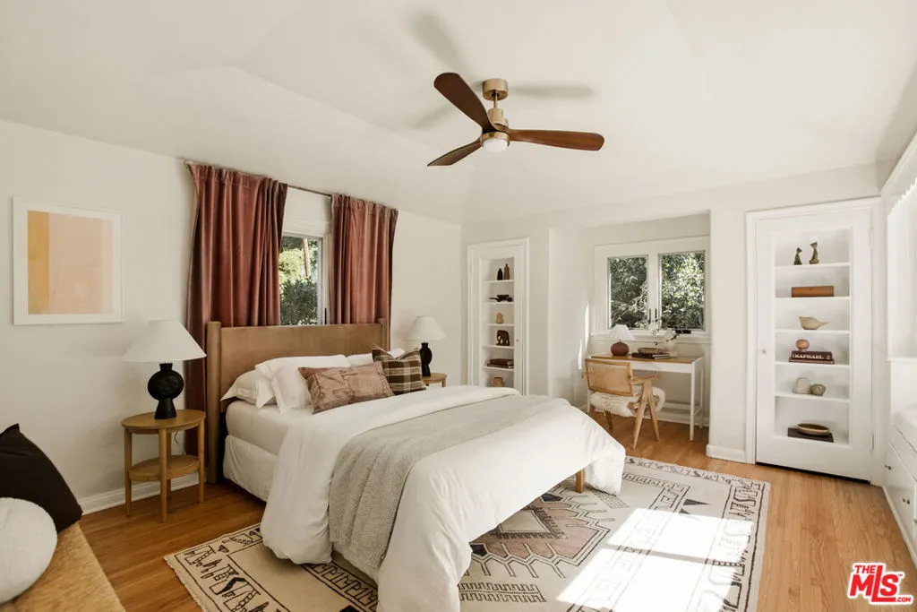 Located in the serene Beverly Crest enclave of Beverly Hills Post Office, this 1928 Spanish residence originally designed and built as the personal home of architect James Conway seamlessly blends timeless character with modern livability. Featuring four bedrooms and three newly remodeled bathrooms, the home offers expansive living spaces that honor its architectural heritage while catering to today's lifestyle. The dramatic step-down living room showcases vaulted king post truss ceilings, rich original details, and a striking arched, tile-accented fireplace. The newly updated chef's kitchen includes an 8-burner Wolf range, a double-door Sub-Zero refrigerator, ample storage, an eat-in dining area, and convenient access to both a side entrance and the attached two-car garage with laundry. Upstairs, three spacious bedrooms offer privacy and abundant natural light. The primary suite is a true retreat, featuring a private balcony, separate living and dressing areas, and a spa-inspired bath with dual vanities and a walk-in shower all thoughtfully designed to capture light from both the front and rear of the home. Just minutes from Coldwater Canyon Park and Franklin Canyon Park, and located within a highly regarded school district, this rare lease offering presents an exceptional opportunity to experience iconic Los Angeles architecture with comfort, privacy, and proximity to nature.