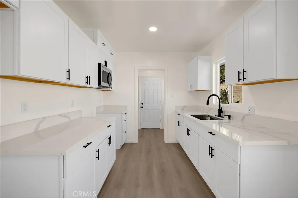 Welcome to this beautifully remodeled home offering the perfect blend of comfort, style and versatility! The main residence features 3 spacious bedrooms and 1 fully remodeled bathroom, thoughtfully designed with modern finishes throughout. Step into the stunning upgraded kitchen, complete with sleek quartz countertops, brand-new cabinetry, and ample space for both everyday living and entertaining. The home showcases new laminate flooring throughout, creating a clean and contemporary feel. The bathroom has been tastefully renovated, and the dedicated laundry room is equally impressive with quartz countertops, shelves, and functional storage space. This home also includes major upgrades for peace of mind and efficiency, including an updated electrical panel with EV charger, dual-pane windows, and an mini-split system to keep you cool during warm summer days. Adding incredible value is the detached bonus room in the backyard perfect for a home office, creative studio, or potential rental opportunity. The exterior features a low-maintenance backyard with fresh concrete, a long driveway with RV parking access, and a gated entry for added privacy and security. Enjoy mature fruit trees, including tangerine and lemon, adding charm and functionality to the outdoor space. Conveniently located near shopping centers and major freeways, this home offers an easy commute. Don't miss this move-in ready gem with endless possibilities. Schedule your private tour today!