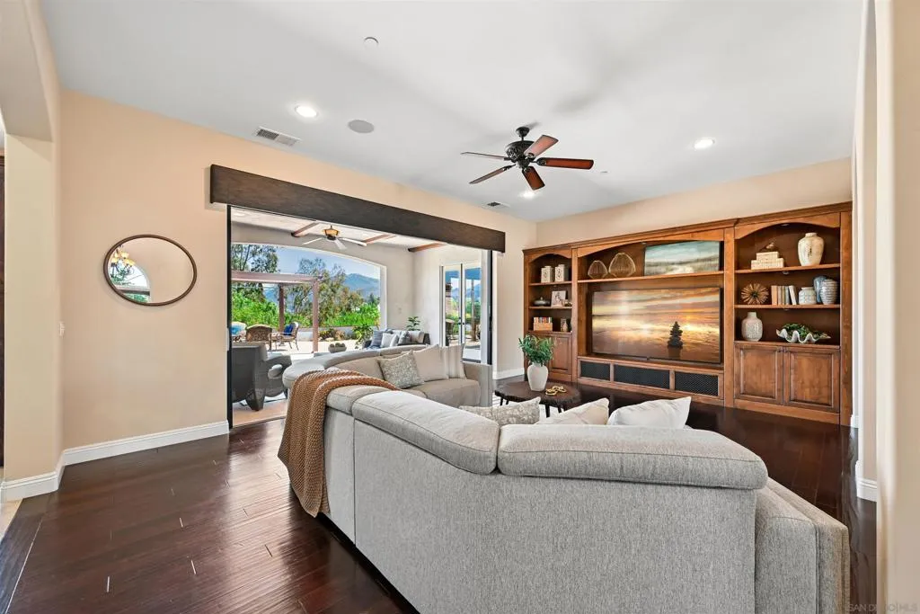 This exceptional custom single-story estate, built in 2010, blends timeless craftsmanship, modern efficiency, and rare privacy. Set on a premium view lot behind a gated entry and long paver-lined driveway, the home offers a grand sense of arrival and true seclusion. Designed for both comfort and function, the home features 3 spacious bedrooms + a dedicated office, with each bedroom offering its own ensuite bath. Expansive stacking glass doors frame stunning golf course views and open to a California room, creating seamless indoor-outdoor living. Inside, enjoy soaring ceilings, wood beam accents, abundant natural light, and extensive custom cabinetry throughout. Additional highlights include a 3-car garage, dual-zone HVAC, whole house fan, water softener, central vacuum, integrated speakers, and whole-home Ethernet wiring. See “Upgrades List” for full details. Energy efficiency shines with a 9.25 kW solar system, two Tesla Powerwalls, and EV charging readiness. The backyard is equally inviting with a pergola-covered patio and turf area—perfect for entertaining or relaxing. With breathtaking views, fruit trees, and exceptional privacy, this outdoor space offers a peaceful retreat designed for both everyday living and memorable gatherings. A rare offering of quality, privacy, and thoughtful design, this home embodies refined single-level living with every modern luxury in place. Welcome home!
