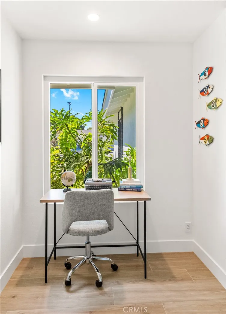 Boutique Hotel Vibes. LOCATION, LOCATION, LOCATION. One and a half miles to the beach, and just a half mile to acclaimed Edison High School. This single-story, 4 bed/2 bath home with 2-car garage is a completely RENOVATED MID-CENTURY GEM on a quiet, interior lot. Professionally designed, light, bright, and magazine-worthy, with new porcelain wood-look floors from Spain, new windows, recessed lighting, and fresh paint throughout. HUGE DREAM KITCHEN (21' x 17') with marble counters, custom island, morning light, and built-in dry bar with wine fridge. Living room features an artisan-created Venetian plaster fireplace. Both bathrooms updated, including custom tile. ALL BRAND NEW APPLIANCES, including washer/dryer (separate indoor laundry room). Backyard features original HAND-PAINTED MURAL by well-known local artist, mature trees, and fire pit. Rare turnkey opportunity- hurry, won't last!