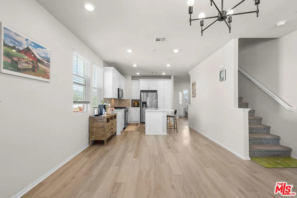 Brand new corner end unit townhouse located in a well maintained safe Stratus community boasting 10-year structural warranty in the city of Pomona. The best homesite lot in the Stratus community featuring premium location with views, two bay side by side garage, extra guest parking spaces and great privacy. First floor features a huge and expansive flex space for a family room or entertainment and as you step up to the second floor, you will be facing well upgraded living room, kitchen, office area, a bedroom and a full bath. Highly upgraded Interior including vinyl flooring throughout, premium backsplash over the quartz counter top, recessed lights all over and more. 3rd floor is your rest nest with good size master bedroom ensuite and another bedroom ensuite with views. Luxury appliances including stainless refrigerator, microwave, oven, washer and dryer are fully equipped. Not to mention fully paid off solar panels that saves you tons of energy. Don't forget the amenities within the community such as pool, barbecue, dog park, walking paths surrounded by well maintained landscaping, guest parking and more. It's also located in the best and easy traffic, right off of 10 fwy before meeting the interchanges.