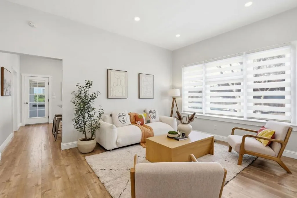 Welcome to this charming 3 beds, 2.5 baths home located in the heart of Santa Clara. With 1,139 square feet of well-designed living space, this residence offers a comfortable and inviting atmosphere. The kitchen is a standout feature, equipped with modern amenities such as a gas cooktop, quartz countertops, a dishwasher, garbage disposal, microwave, and refrigerator, making it a functional space for culinary enthusiasts. The flooring throughout the home includes durable laminate and elegant tile, adding to the overall appeal. For your convenience, the laundry area is located inside and includes a washer and dryer. The central AC and heating ensure year-round comfort, while the formal dining room and eat-in kitchen allow for flexible dining options. The bathrooms feature updated fixtures, including stall showers and tile finishes. You can park up to 4 cars inside and outside the house. The home is located within the Santa Clara Unified School District. Do not miss the opportunity to make this Santa Clara gem your own!