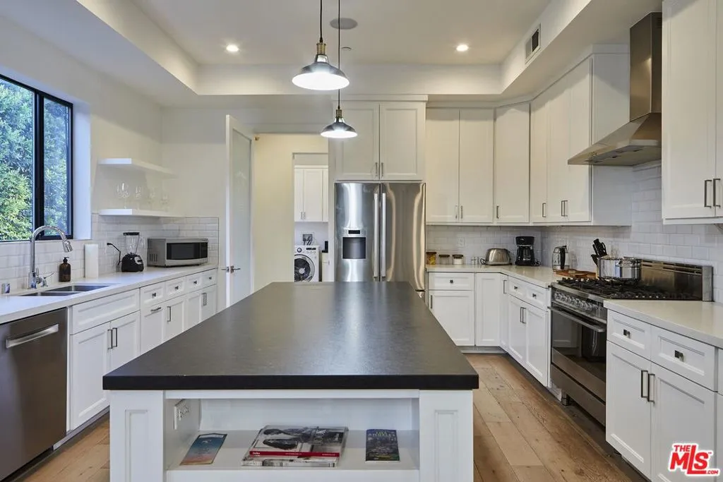 FULLY FURNISHED AND FULLY EQUIPPED Contemporary home, on a gated lot in Tarzana. This immaculate 4BD/4.5BA, open-concept home has outstanding aesthetics and flow. Light hardwood flooring, large portrait windows, and high ceilings w/ recessed lighting, accent this space with finest of taste. This fully furnished home features: a well equipped chef's kitchen, stainless steel appliances, a breakfast island, formal dining table, a modern living space w/ sectional couch, 4 flat panel TVs, fireplace, washer & dryer, two car garage, and a covered patio area. Huge master bedroom hosts: King sized bed, giant walk-in closet, double sinks, vanity, hot tub, and walk-in shower. Hot tub in the backyard. Conveniently located near the 101 FWY, and walking distance from Ventura Blvd. Local to trendy restaurants, boutique-shopping and entertainment. Listing price is the monthly rate, based on a 1 year rental contract. Short-term rental also available. Please inquire for rates.