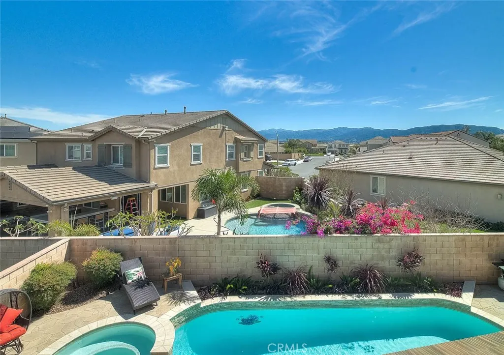 Stunning Next Gen Home in Eastvale – Built for Multigenerational Living Located in a desirable Eastvale neighborhood, this impressive 2017 built Next Gen home offers exceptional space, flexibility, and comfort — perfect for extended families. It boasts of a total of 7 Bedrooms, 4.5 Bathrooms, full-span alumawood covered patio, private pool, a secure, gated dog run with durable turf, 3-car garage and NO HOA! The Main Home offers 5 Bedrooms comprised of 2 ensuite bedrooms + 3 other bedrooms, and 3.5 bathrooms. Upon entry, you’re welcomed by an open-concept floor plan seamlessly connecting the Living room and gourmet Kitchen with an expansive breakfast bar. The inviting living room features a cozy fireplace, while the kitchen showcases granite countertops, stainless steel appliances including gas range, built-in microwave, double oven and dishwasher — perfect for entertaining and everyday living. The Living, Kitchen and Dining areas comprise the Great Room which flows onto the covered patio offering seamless indoor-outdoor living, pool and private Backyard including an enclosed dog run along the Side Yard. Upstairs, a large open Loft provides additional flexible living space along a spacious Primary Suite, three generously sized bedrooms plus another en-suite Bedroom. The Next Gen suite features 2 Bedrooms with its own separate entrance, Living & Dining area, Kitchenette, a full bathroom and stackable washer and dryer, ideal for guests, rental potential, or multigenerational living. Additional highlights include tankless water heater, solar power system, quiet residential setting and many more!! This rare Next Gen layout offers privacy and versatility while keeping everyone connected under one roof. A must-see opportunity for families seeking space, functionality, and long-term value!!!