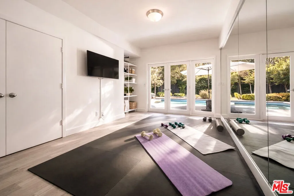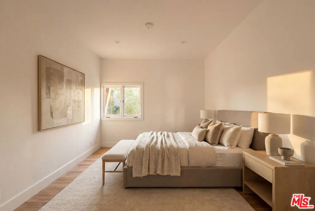 Located on a quiet cul-de-sac in one of the most peaceful pockets of Santa Monica Canyon, this recently renovated contemporary home offers privacy, scale, and effortless indoor-outdoor living on an expansive, flat lot. Set behind gates and surrounded by mature trees, the property feels both secluded and connected to the best of canyon living. The home is filled with natural light, featuring soaring ceilings, walls of glass, and an open, flowing floor plan designed for both everyday living and entertaining. A dramatic entry with a statement staircase leads to spacious living and dining areas, a dedicated office or den, and a chef's kitchen with custom cabinetry and high-end appliances. The kitchen opens seamlessly to the family room, all overlooking the beautifully landscaped backyard. Outdoor spaces are designed for year-round enjoyment, complete with multiple entertaining patios, a fire pit, built-in BBQ, and a pool and spa - all framed by lush greenery for added privacy. Upstairs, the primary suite offers a private retreat with a sitting area, fireplace, dual walk-in closets, and a spa-like bath, along with access to outdoor terraces. Five additional bedrooms and well-appointed living spaces provide flexibility for guests, family, or work-from-home needs. Additional highlights include hardwood floors, French and sliding doors throughout, two staircases, and a direct-access two-car garage. Just moments from the beach, this turnkey property combines the tranquility of canyon living with close proximity to everything the Westside has to offer, all within a close-knit and highly sought-after community.