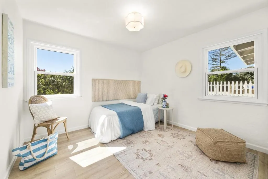 Live the dream on Santa Cruz's coveted Upper Westside. Set on a quiet cul-de-sac with peaceful peeks of the bay, this beautifully updated 3BD/2BA, 1,614 Sq Ft home, offers a rare blend of privacy, natural light, and indoor outdoor living just minutes from the coast. Vaulted ceilings, abundant windows, and wide plank white oak LVP floors create a bright, airy feel throughout. The updated kitchen features solid surface countertops, stainless appliances, and a layout that flows easily into the main living spaces. Separate living and family rooms provide flexibility for relaxing, entertaining, or gathering by the fireplace. Refreshed bathrooms feature stylish upgrades including a rain shower and lighted vanity mirror. Double pane windows, fresh paint, contemporary lighting, and a dedicated laundry and storage room add everyday comfort. Outdoor living shines with a private sunny courtyard, covered front porch, lush landscaped gardens, mature lemon tree and multiple patio areas perfect for outdoor dining, lounging, and entertaining. Ideally located near Swift Street Commons, popular restaurants, breweries, boutique shops, beaches, and Wilder Ranch coastal trails. A rare opportunity to enjoy the best of Upper Westside Santa Cruz living. Come for a sunset, stay for a lifetime.