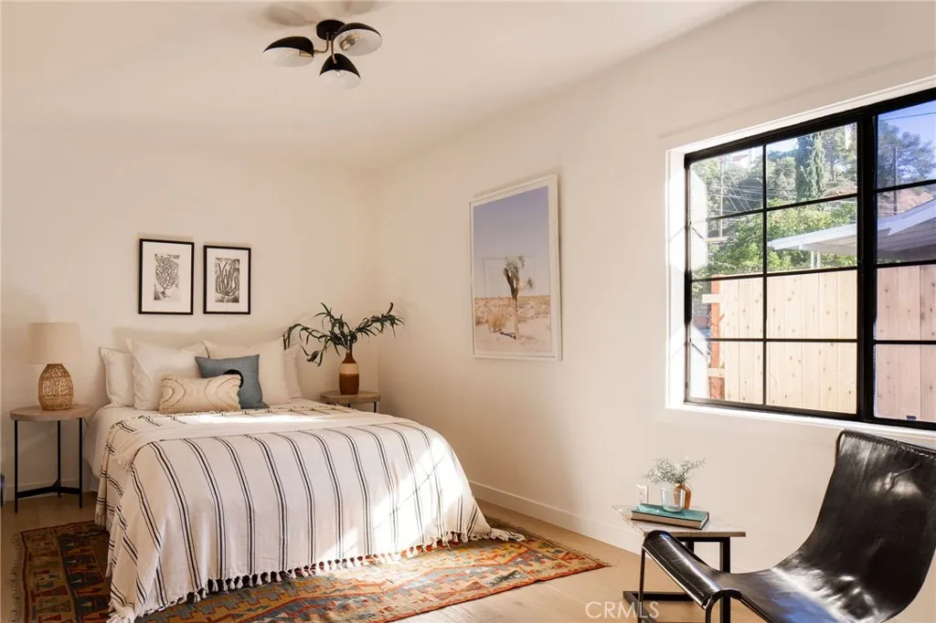 Nestled in prime Eagle Rock just below the trendy shops and eateries on nearby Colorado Blvd and a stone's throw to sought after schools awaits 4843 Genevieve Ave, a light and bright sanctuary space brought to you by K + S Collective! Upon entering the pathway through the lush fenced in front yard and into the main living space you'll find that absolutely everything has been lovingly custom designed from head to toe with thoughtful details and updated with meticulous craftsmanship. This exquisite home features three bedrooms, two baths PLUS a detached studio with its own half bath, perfect for guests, work, or creative pursuits. With warm wood flooring, updated systems, designer selected finishes, wood accents, custom wallpaper, skylights and detail work, you'll find that every space in this home has been carefully curated to create beauty, comfort and joy. The bright floor plan of the home flows with ease and the expansive living room effortlessly opens to a gorgeous chef’s kitchen that features custom built cabinetry, beverage storage, top-of-the-line appliances and an abundance of storage. Just beyond the kitchen a charming built-in banquet area serves as a picture perfect family gathering and dining space. The ultra private and dreamy primary retreat is tucked away in the back of the home and features a massive walk-in closet that could double as a creative space or nursery and a luxurious ensuite bath complete with a chic soaking tub and spa-like glass walk-in shower. There is also a huge laundry / craft room with lovely custom shelving and finish work that doubles as a sweet homework station, home office or zoom meeting headquarters! Outside, you'll find a beautiful large grassy yard perfect for lounging, play, or epic family gatherings. A long gated driveway leads to a garage that adds convenience and functionality. The adorable detached studio / guest space is located just behind the spacious garage and offers versatility galore. This sweet gem is a classic Eagle Rock dream home!