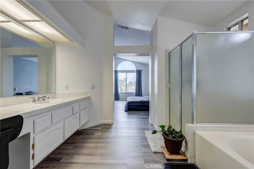 Welcome to your dream home in the highly sought-after Orangecrest community, where space, style, and functionality come together effortlessly. This st 4-bedroom, 3 full bath residence offers a thoughtfully designed layout, including a convenient main-floor bedroom and full bath perfect for guests or multi-generational living. Upstairs, you’ll find three additional bedrooms, including a luxurious primary suite that serves as your own private retreat, complete with ample space to relax and unwind. The heart of the home is the beautifully appointed kitchen, featuring sleek quartz countertops that flow seamlessly into the inviting family room with a cozy fireplace, ideal for both everyday living and entertaining. Step outside to a spacious backyard designed for enjoyment, showcasing a covered patio and a newer concrete slab, perfect for gatherings, outdoor dining, or simply soaking in the California sunshine. The property also boasts a 3-car attached garage and an expansive driveway with room for at least 4 additional vehicles, offering exceptional convenience for homeowners and guests alike. This home truly checks all the boxes.
