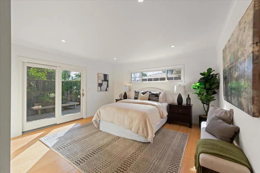 Welcome 287 Santa Margarita, a timeless Menlo Park Traditional with one of the best backyards in The Willows. Enter into a foyer that leads to an open floor plan, with hardwood floors and tons of natural light. The living room is anchored by a wood-burning fireplace and large picture window, while the dining room leads to the side deck and is open to the remodeled kitchen with tons of storage, a spacious pantry with pull-outs, and the laundry room. Two bedrooms share an updated bathroom and the oversized primary suite has two closets and an ensuite remodeled bath with walk-in shower and marble-topped vanity. As an added bonus, the garage has been converted to a bonus space with a bathroom, Murphy Bed, separate entrance, and a large closet - perfect for multigenerational living, home office/gym, guest house, and many other practical uses. Once outside, the sounds of the birds and bees abound: a heated pergola with built-in lighting, fans, and a mounted TV for al fresco dining or outdoor movie nights, a firepit, garden bed, playground, fish/turtle pond, BBQ deck, and large grassy area for relaxing and playing. Come find your sanctuary at 287 Santa Margarita!