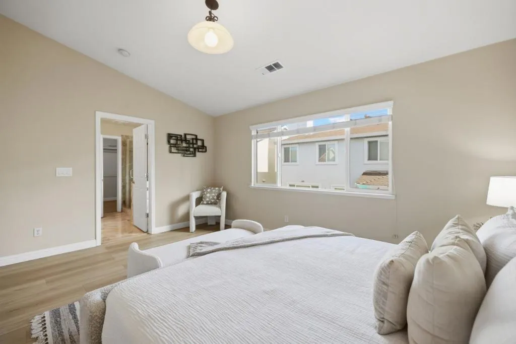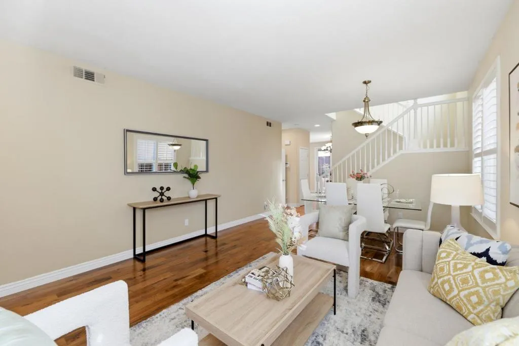 Welcome to this charming 4-bedroom, 2.5-bathroom home located in the vibrant city of San Jose. Spanning 2,082 square feet, this residence offers a blend of comfort and functionality. Renovated kitchen with quartz countertop, stylish cabinets, a dishwasher, exhaust fan, garbage disposal, electric oven range, and refrigerator. Enjoy the warmth of hardwood on the first floor and new flooring throughout the 2nd floor and the stairs. Renovated bathrooms with granite countertops and marble floor. The family room provides a cozy atmosphere with its gas log fireplace, ideal for relaxation. The dining area is conveniently situated within the living room, promoting a seamless flow for entertaining. The spacious master bedroom offers vaulted ceiling, ample space, including a walk-in closet for added storage. The home is equipped with central AC and central forced air-gas heating to ensure comfort throughout the year. Upstairs laundry area is equipped with a washer and dryer for your convenience. Close to park, BART station, HW 680, Ranch 99 and Costco shopping center. This home combines amenities and location, promising a comfortable lifestyle.