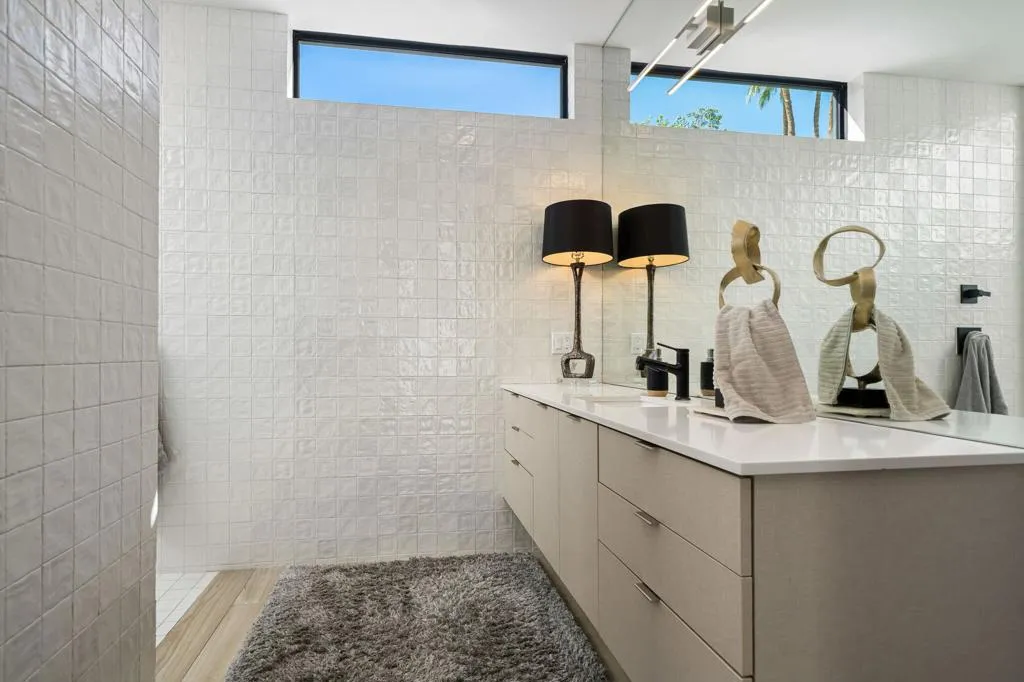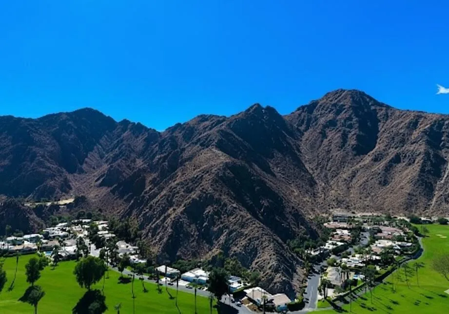Stunning Mid-Century Modern Home in Historic Indian Wells Country Club. Built in 2021, this 4BD/3BA residence is a masterful blend of new construction and classic mid-century modern design, showcasing high-end finishes and thoughtful craftsmanship throughout. Perfectly positioned within the Indian Wells Country Club, this home offers classic style and effortless indoor-outdoor living, with sweeping fairway views from the front courtyard and a truly exceptional setting unique to only a handful of properties in Indian Wells CC--nestled in the mountain with a completely private backyard.From the moment you enter, you're welcomed by a breathtaking mountain backdrop and a sophisticated open floor plan that features high ceilings, custom plank porcelain flooring, smooth coat interior walls, dimmable recessed lighting, and expansive sliding glass doors in every room that fill the space with natural light. Richly appointed bedrooms are complemented by spa-inspired bathrooms, including two serene outdoor showers. The gourmet kitchen is a focal point of the home, featuring sleek quartz countertops and stainless-steel appliances, all overlooking a spacious great room with a striking fireplace and three floor-to-ceiling glass sliding doors that provide a flawless transition to your private desert retreat. Outside, take in a picturesque desert setting complete with a hybrid saltwater lap/swim pool with multicolored lighting, a gas fire pit, low-maintenance natural landscaping, and extensive outdoor lighting--perfectly designed for both daytime lounging and evening entertaining.Additionally, a fully detached, self-contained casita adds versatility, equipped with a full kitchen and washer/dryer--ideal for guests or extended stays. Bonus: No HOA dues, owned solar system, 3-zone controlled HVAC, artificial turf, oversized 3-car garage with golf cart parking, and just a 5-minute walk to the Indian Wells CC clubhouse. This is desert living reimagined--modern luxury, classic charm, and a prime location.