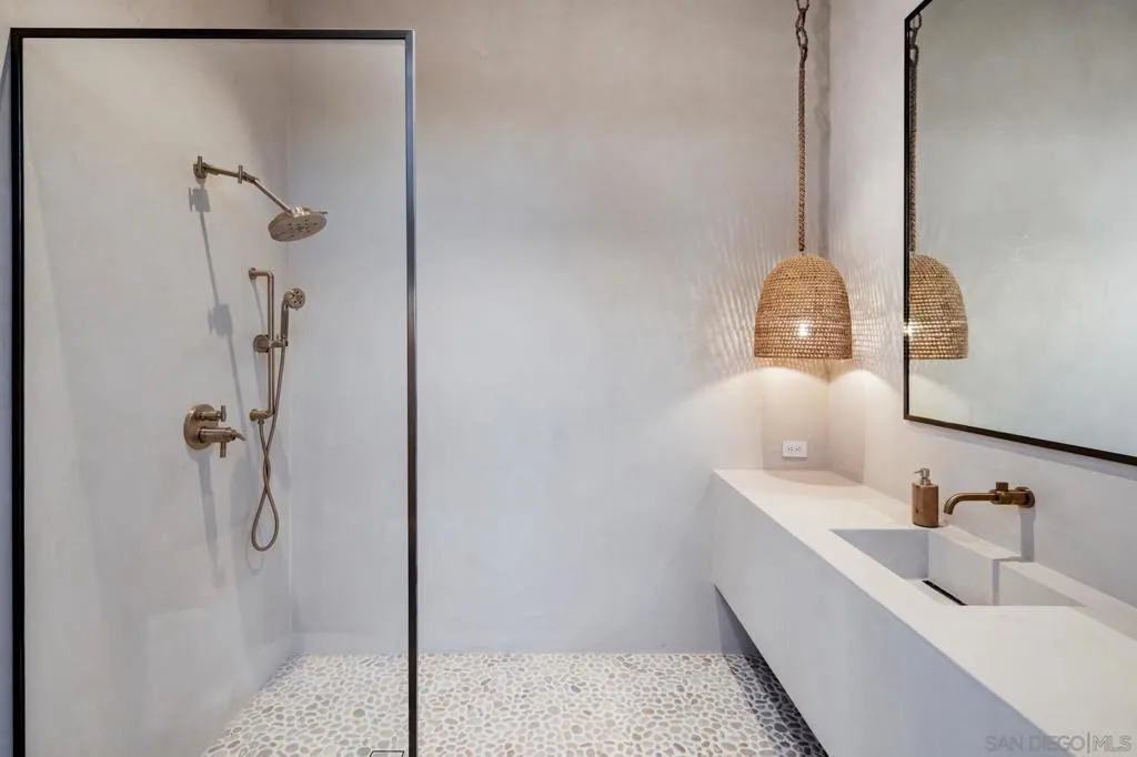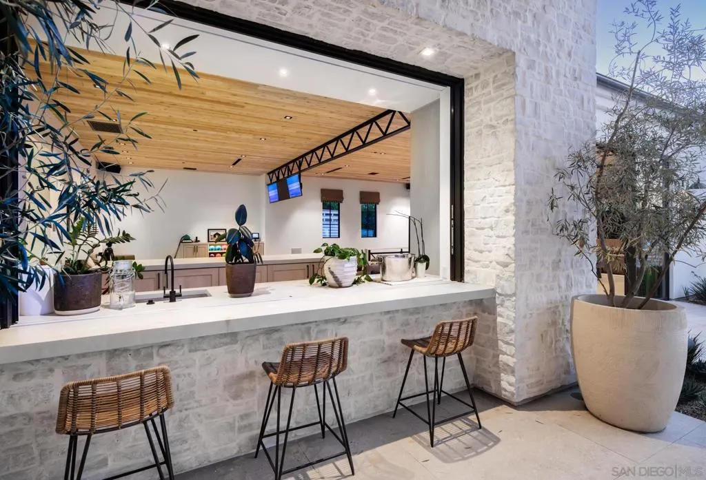 Nestled within a prestigious gated community in Rancho Santa Fe, this monumental "Californian Modern organic" estate featured in Wall Street Journal is a breathtaking triumph of architectural precision and soulful design. Meticulously crafted from the ground up over three years, the residence serves as a grounded sanctuary that seamlessly connects to its natural surroundings using timeless organic materials. Rejecting the predictable layout of traditional luxury, the home welcomes guests through a curated courtyard experience that flows effortlessly into a great room and gourmet kitchen. Here, monumental 16-foot tall steel pocket sliders dissolve the boundaries between indoors and out, acting as a transparent lens for the property's stunning sunset views. Every detail was executed with a "no room for error" philosophy, utilizing bespoke steel finishes that allow every door to look and function like a window. At the creative heart of the home lies a serene photography studio bathed in natural light, offering a "quiet spirit" inspired by the grace and presence of the equestrian lifestyle. Beyond its striking aesthetics, this 2.44-acre estate is an elite environment engineered for unparalleled wellness, recreation, and longevity. The primary suite functions as a private high-performance retreat, complete with a personal spa, built-in sauna, and steam room. Operating with the effortless sophistication of a five-star resort, the residence boasts one of San Diego’s most advanced automation systems, featuring hidden "mud in" speakers for ubiquitous sound and a centralized climate command center that removes visual clutter via discrete room sensors. The dedication to bespoke luxury extends to the outdoors, where a state-of-the-art golf simulator and a custom "Back nine greens" putting surface await alongside a culinary kitchen island featuring custom dual pasta-board pullouts. Secluded behind dual gates and protected by a hidden safe room, the tranquil grounds are a sustainable ecosystem of ancient oaks, citrus groves, and lush lavender. To ensure this pristine landscape remains an uncontaminated sanctuary for generations, a dedicated, architecturally matched maintenance shed houses equipment used exclusively on the property.