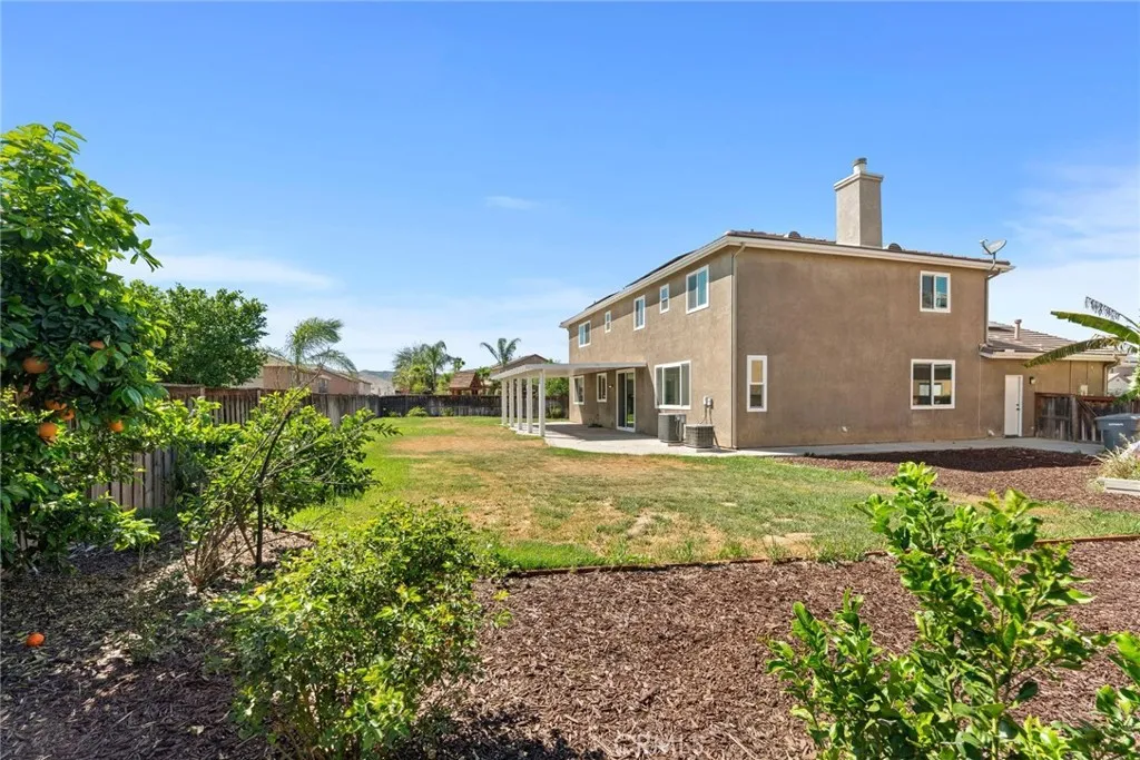 THIS HOME TRULY HAS IT ALL! GORGEOUS HOME AT THE END OF A CUL-DE-SAC ON A LARGE PIE SHAPED LOT IN A NICE QUIET NEIGHBORHOOD WITH OVER 3000 SQ. FT. OF LIVING SPACE. OPEN AND SPACIOUS FLOOR PLAN. AS YOU WALK IN THRU THE FRONT DOOR YOU ARE GREETED BY TWO STORY HIGH CEILINGS, A LARGE LIVING ROOM AND AN ADJACENT BEAUTIFUL DINING ROOM. AS YOU MOVE THRU THE HOME THERE IS AN OVERSIZED FAMILY ROOM WITH A COZY FIREPLACE THAT OPENS UP TO A GRAND KITCHEN WITH A LARGE ISLAND, LAMINATE FLOORING, RECESSED LIGHTING AND PLENTY OF CABINET SPACE. THERE IS ALSO A VERY SPACIOUS BEDROOM AND A FULL BATHROOM IN THE LOWER LEVEL ALONG WITH A SEPERATE LAUNDRY ROOM. IN THE UPPER LEVEL YOU HAVE A HUGE MASTER BEDROOM SUITE WITH A LARGE MASTER BATHROOM WHICH INCLUDES A DOUBLE DOOR WALK-IN CLOSET, SEPERATE SOAKING TUB AND SHOWER, PRIVATE TOILET AND DUAL LAVS. YOU ALSO HAVE THREE ADDITIONAL SPACIOUS BEDROOMS, A FULL BATHROOM WITH WOOD LAMINATE FLOORS AND A HUGE LOFT FOR ADDITIONAL LIVING SPACE THAT CAN BE USED FOR A GYM AREA, AN OFFICE AREA, A PLAY AREA OR WHATEVER YOUR HEART DESIRES. THE BACKYARD IS HUGE AND READY FOR ENTERTAINING AND HAS A NICE NEWLY PAINTED COVERED PATIO WITH DECORATIVE STAMPED CONCRETE AND SEVERAL FRUIT TREES INCLUDING LEMON, TANGERINE, ORANGE, GRAPEFRUIT AND A BANANA TREE. THE HOME ALSO COMES WITH A THREE CAR GARAGE FOR THOSE GARAGE ENTHUSIASTS. THIS HOME REALLY HAS IT ALL AND HAS BEEN VERY WELL MAINTAINED. ALL NEW DUAL-PANE WINDOWS AND SLIDER DOOR WERE INSTALLED ABOUT A YEAR AGO AND NEW PAINT, CARPET AND LAMINATE FLOORING WAS ADDED ABOUT 3 YEARS AGO. AND THEN LAST BUT NOT LEAST THIS HOME DOES COME WITH PAID OFF SOLAR PANELS. YES YOU HEARD IT... PAID SOLARS. COME AND CHECK OUT YOUR NEW HOME CAUSE ONCE YOU SEE IT YOU WON'T WANT TO LEAVE.