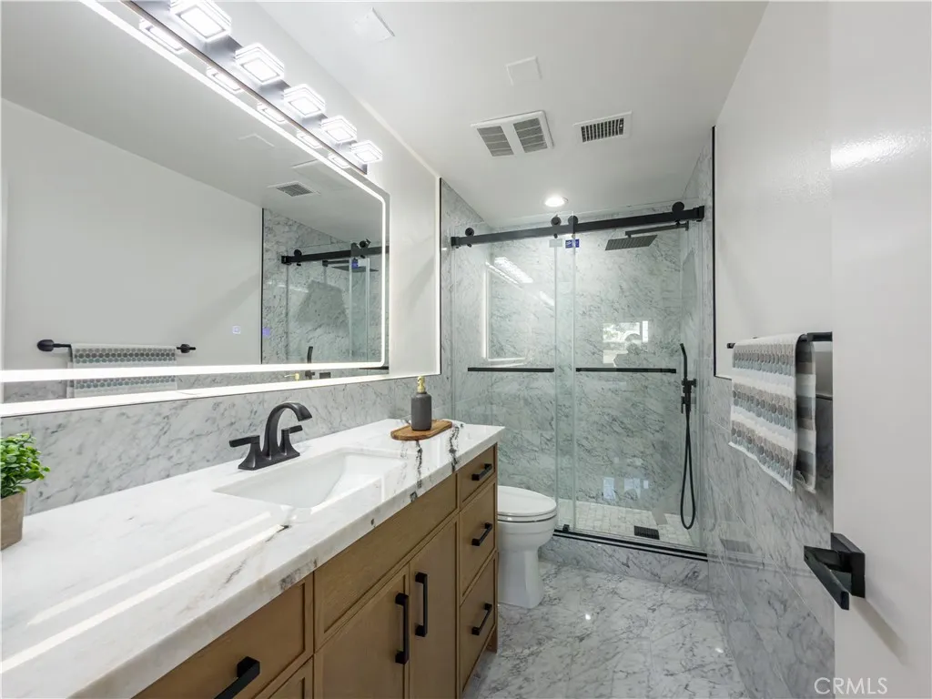 Sellers are open to assisting buyers with interest rate buy-down. Best value per sqft for a beautifully remodeled 2-bedroom, 2.5-bath condo in prime Westwood location*****All work was completed with permits to ensure quality and compliance*****Features include 8mm waterproof SPC vinyl flooring with 12mm underlayment, new double-pane windows and sliding door, recessed lighting with dimmers, and a marble-faced fireplace. The bathrooms showcase marble floors and backsplash, custom vanities with granite countertops, Kohler faucets, 12" rainfall showers, LED mirrors with defrost, and Kohler toilets. The modern kitchen boasts frameless cabinets, granite countertops, glass tile backsplash, and high-end appliances including a 36" American Range 6-burner (ARROB366-N), 42" ZLine range hood (619-42), GE Profile built-in microwave (PWB7030SLSS), Fisher & Paykel counter-depth French door refrigerator (RF170ADX4N), Samsung stainless-steel dishwasher (DW80BB7070), and Kohler faucet. Additional highlights include central air/heat, in-unit laundry room, balcony off the living room, optional no-stairs access from garage to the unit via elevator in the lobby, gated 2-spaces tandem parking, and community pool, spa, and clubhouse. Located in the desirable Westwood Charter school district, just minutes from UCLA, Century City, and Beverly Hills.