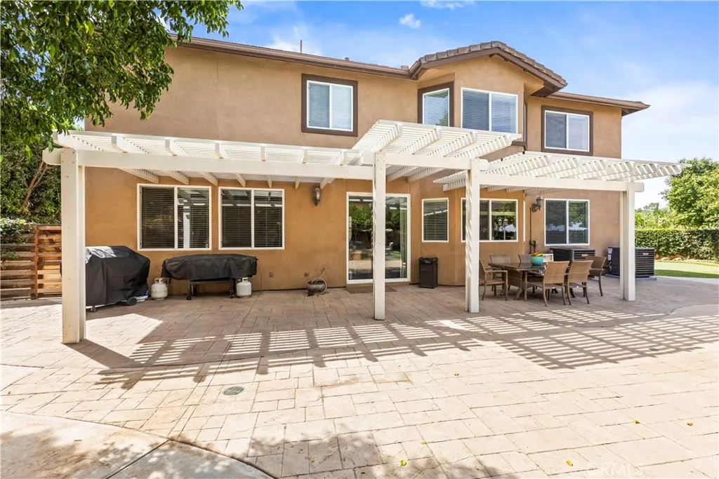 Impressive views. Expansive living. Prime location. Your search is over! Welcome to a model-perfect residence tucked away on a private cul-de-sac, offering 3,572 sq ft of living space on a generous 10,018 sq ft sized lot that offers excellent potential for an ADU and/or pool, providing flexibility for extended family or future rental income. Complete with a 3-car garage, views of the city lights, surrounding mountains, and the natural beauty of the Cleveland National Forest. Ideally located just minutes from Orange County, this home delivers the perfect balance of accessibility and tranquility, with the renowned Skyline Trail just moments away. The thoughtfully designed floorplan features 5 bedrooms, 4 bathrooms, and a spacious loft, including a large upstairs bedroom with its own attached bathroom (junior suite). Interior highlights include hardwood flooring, travertine tile, soft water system and water purifier, an upgraded kitchen with granite countertops, maple cabinetry with glass accents, double oven and stainless steel appliances. The family room includes custom built-in cabinetry, and opens to the main living areas. A highly desirable main-floor bedroom and full bathroom with walk-in shower provides flexibility for guests or multi-generational living. Upstairs, the expansive primary suite includes a dedicated sitting area, upgraded bathroom, and walk-in closet with built-ins. Additional features include a large loft/bonus room with cabinetry and DUAL STAIRCASES plus surround sound in the family room, primary bedroom and the loft. Recent upgrades include two brand new air conditioning systems and a fully paid solar system. The backyard features low-maintenance turf, a putting green, a covered patio, and extended concrete hardscape, offering a spacious setting for outdoor living and entertaining. Located within the Corona-Norco Unified School District, with access to well-rated local schools plus minutes from shopping, dining, and entertainment at The Crossings at Corona and Dos Lagos.