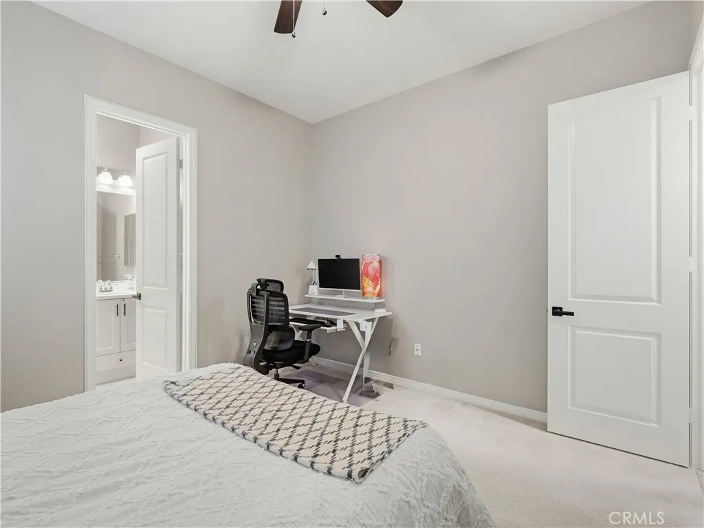 Gated Five Knolls Community featuring 4 bedrooms, 4 bathrooms, a Massive Loft, with over 3,800 SQFT of living, a Downstairs Bedroom with ensuite Bathroom, Solar with Backup Battery, located on a Cul-de-sac. This spacious and highly upgraded home offers an ideal layout with modern finishes and exceptional indoor-outdoor living. Step into the formal living room and continue into the expansive great room showcasing a large family room with fireplace, dining area, and a chef’s kitchen complete with a huge center island, quartz countertops, stainless steel appliances, upgraded backsplash, abundant cabinetry, and extensive counter space. The main level also features a well-appointed mud room, an oversized walk-in pantry, powder room, and an abundance of natural light from numerous windows. A sliding glass door leads to the indoor/outdoor living space with a ceiling fan, outdoor TV, built-in BBQ ready and beautifully landscaped yard with fruit trees, garden bed, and olive tree arch—perfect for entertaining. Upstairs, enjoy a massive loft filled with natural light, ideal for a game room, media space, or additional living area. The spacious primary suite offers mountain and city light views, dual walk-in closets, and an oversized ensuite bathroom with separate vanities, soaking tub, and a large walk-in shower. Two huge additional bedrooms, one with a sitting area, and a large laundry room with storage and countertop complete the upper level. Interior highlights include wide-plank waterproof luxury laminate wood flooring, soaring ceilings, LED recessed lighting, ceiling fans, dual HVAC systems with AIRBRIGHT UV Air Purifier, Nest Thermostats, smart home lock and cameras, and a tankless water heater. The 3-car tandem garage is EV charger ready. Residents of Five Knolls enjoy resort-style amenities including a pool, spa, clubhouse, paddle tennis courts, BBQ areas, fire pits, and scenic hiking trails. Conveniently located near Golden Valley Park with a playground and dog park, as well as shopping, dining, and easy access to everything Santa Clarita has to offer.