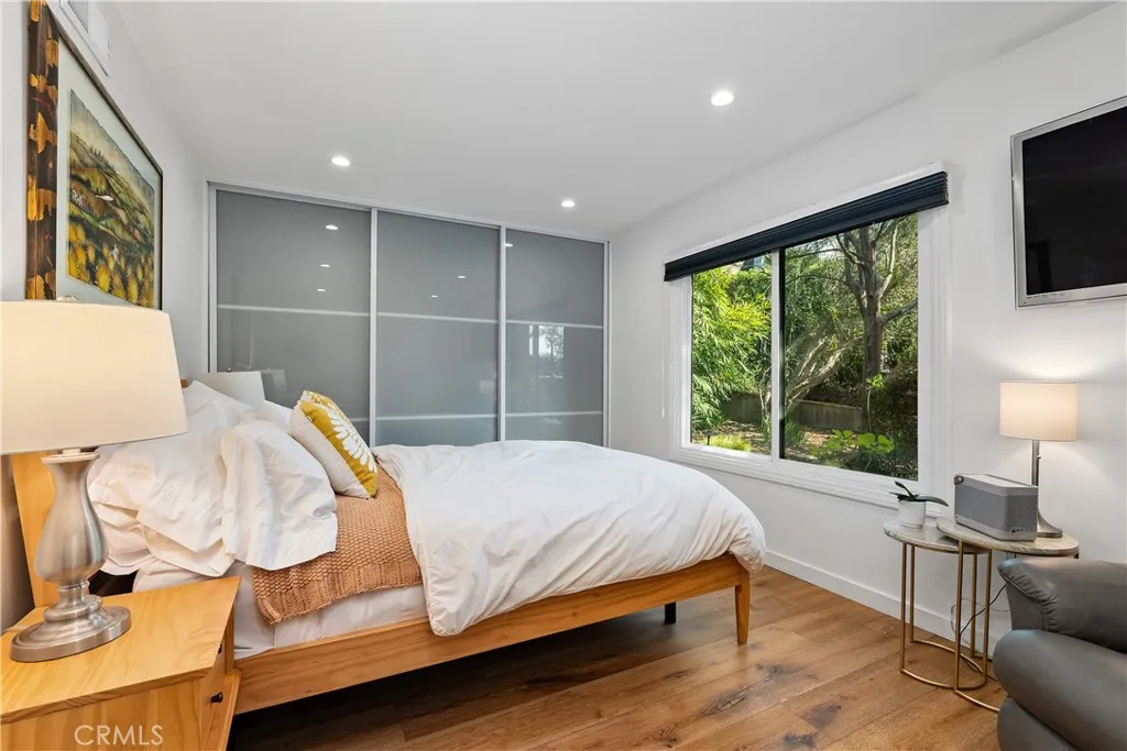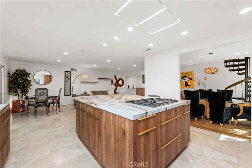 This absolutely stunning 4 bedroom, 3 bath, gated view home truly leaves nothing to be desired. A stone driveway and winding path lead to a custom glass front door, opening into a beautifully renovated single story home that seamlessly blends elegance and comfort. The dramatic two-story living room features an artistic spiral staircase leading to a loft, creating a striking architectural focal point. The gourmet kitchen, renovated in 2025, is a chef’s dream, showcasing top-of-the-line Thermador appliances, sleek porcelain countertops, and an oversized center island with a breakfast bar. Expansive corner windows frame breathtaking views and effortlessly bring the outdoors inside. The kitchen opens to a spacious family room, warmed by a cozy fireplace—perfect for everyday living and entertaining. Wide-plank wood flooring and travertine flow throughout the home. Double doors welcome you into the serene primary suite, complete with a generously sized, custom-built closet. The spa-inspired primary bathroom, renovated and gorgeous, features quartz countertops, dual sinks, and a luxurious steam shower with dual shower heads. This home boasts numerous upgrades, including owner-paid in full solar with a battery backup, updated pool equipment and lighting, electrical panel, intercom and cameras, a newer 2026 roof, and more. The incredible covered outdoor kitchen completed in 2025, offers heating and a ceiling fan, allowing for year-round enjoyment. Private and serene, the grounds are nothing short of magical, day and night. Watch breathtaking sunsets, gather around a fire pit with built-in seating, take a refreshing dip in the Pebble Tech pool, or unwind in the tranquil spa. As you wander this very private property, you’ll discover something special in every corner. Mature, arboretum-like landscaping reminiscent of the LA Arboretum creates a truly unforgettable setting. This property is part of the Bon Vivant Community and has access to Tennis Courts, a community pool and clubhouse with incredible views of the San Fernando Valley!