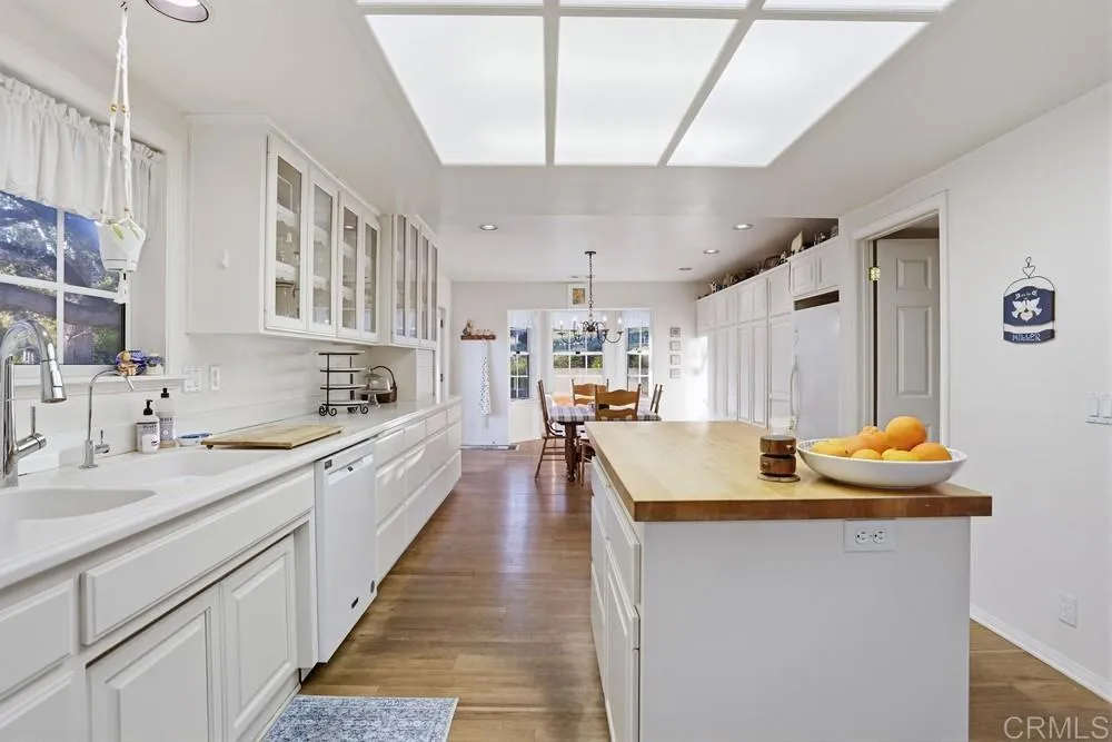 Come enjoy country tranquility, a stunning view of the Santa Margarita River valley, and your own fresh-squeezed orange juice every morning! Nestled on two rolling acres is a custom single-story 3|3, 3,200 sq foot home perched atop a boutique Fallbrook avocado and citrus ranch. This home is ready to welcome a new family looking for the country life, just 10 minutes from downtown Fallbrook. Two en-suite primaries with walk-in closets on opposite ends of the house provide relaxed and spacious living that could suit big families, multigenerational living, or bonus rental income. The house boasts a large living room for gathering, with wrap-around bench and a wood-burning fireplace, an oversized cook’s kitchen with wood floors and a new quartz-topped island, and two spacious dining areas for intimate or formal meals. Enjoy cool air conditioning throughout for hot days! One additional bedroom with built-in window seat rounds out the floor plan, with two bonus rooms that could become bedrooms, work-from-home offices, dens, or entertainment centers. Throughout, you’ll find ample built-in storage with enough bookshelves to delight the most avid readers. Outside, the property features 39 mature avocado and citrus trees, 6 custom cedar wood garden boxes ready for your summer planting, wire garden fencing to support boysenberry, grape, or blueberry crops, a single car garage with bonus office inside, and several patios for relaxing, entertaining, or grilling. Come live the modern country life.