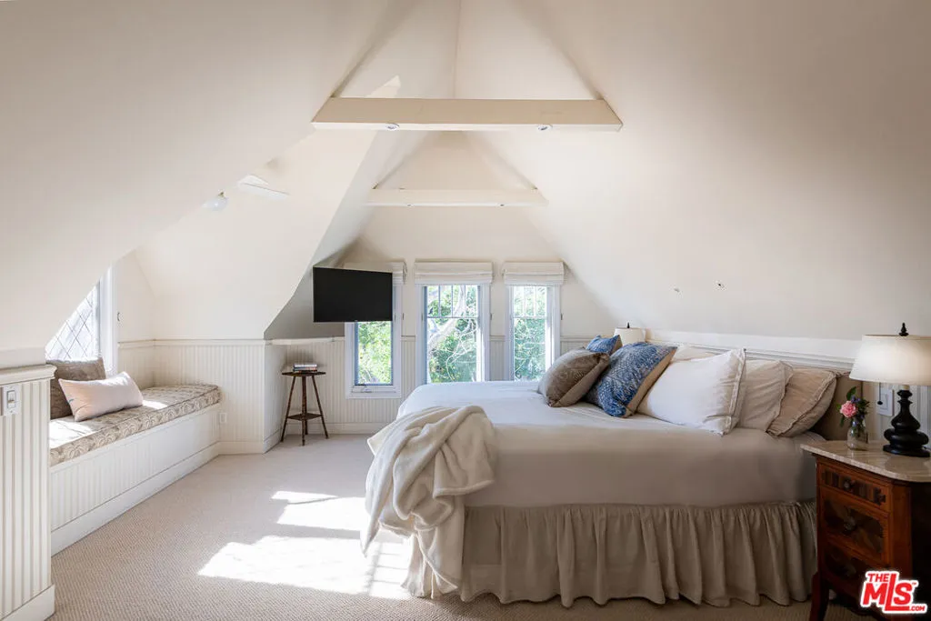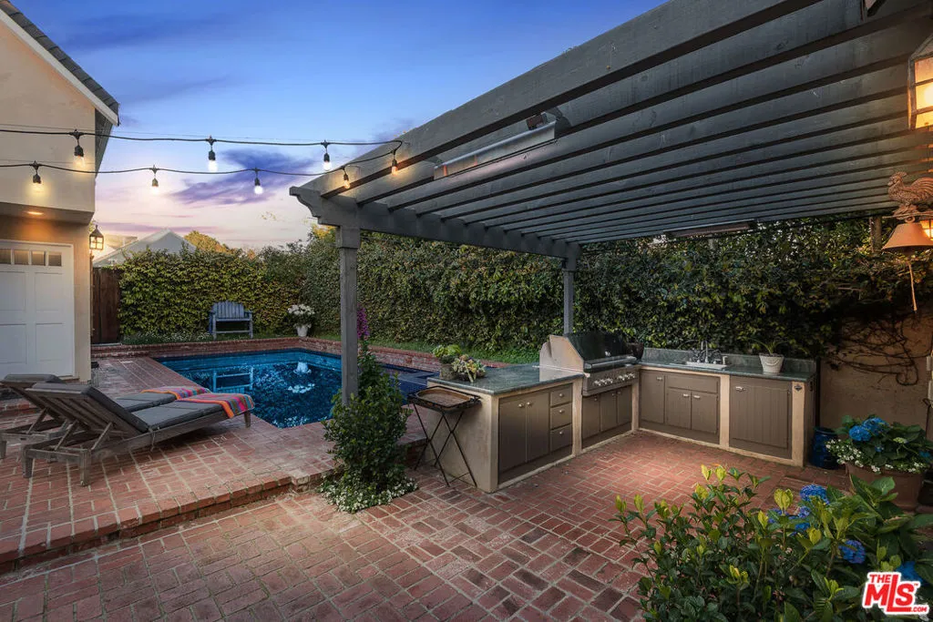 This classic 1925 Country English home sits on a quiet street, North of Montana in Santa Monica. The home and grounds have been luxuriously restored and updated throughout. It's an extraordinary indoor/outdoor entertaining house with a fully equipped gourmet kitchen with large adjacent family room, both opening to the back yard. The first floor features two private office spaces. There are four bedrooms upstairs and one bedroom suite downstairs. The primary suite includes sunny window seats, indulgent primary bath and large walk-in closet. A spacious and private outdoor garden includes a blue tiled pool, hot tub, mature fruit trees and English garden house. Available for the month of July!