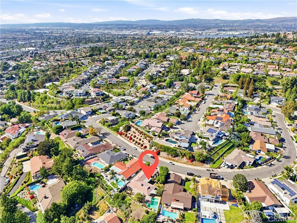 An incredible and rare opportunity to reimagine a once-celebrated showplace in one of the most sought-after hillside neighborhoods in the Orange. Perfectly positioned high above the OC basin on an expansive approximately 14,400 square foot lot, this single-story residence showcases truly spectacular panoramic views of city lights, skyline, sunsets, and the world beyond. From the moment you pass through the gated entry into the private front courtyard, a sense of arrival and possibility is undeniable. Step through the front door and you are immediately greeted by breathtaking horizon views that set the tone for the home’s incredible potential. The welcoming entry flows into an oversized living and dining space highlighted by walls of glass and captivating vistas. The adjacent kitchen with breakfast nook overlooks the backyard, pool, and endless views beyond — offering the perfect footprint for a stunning future transformation. A versatile den or family room with a sliding door to the courtyard provides ideal space for a home office, media room, or additional entertaining area. A powder room and service porch with direct patio access add convenience and functionality. Privately situated, the light-filled primary suite enjoys remarkable views and features a spacious bath with soaking tub and separate shower. Two additional generously sized bedrooms, a large hall bath and a huge laundry room complete the home’s more than 2,500 square feet of living space. The backyard was originally professionally designed for grand-scale entertaining and features a large pool, spa, expansive decking, multiple patio and lounge areas, and mature landscaping — all set against a truly awe-inspiring panoramic backdrop. This well-loved home is ready for its next chapter. With outstanding bones, an unbeatable view setting, and located among beautifully maintained pride-of-ownership properties, this is a rare chance to purchase at an exceptional value and create your own hillside dream estate. If you’ve been waiting for the perfect opportunity to renovate, customize, and elevate a home in a premier location — this is the one.